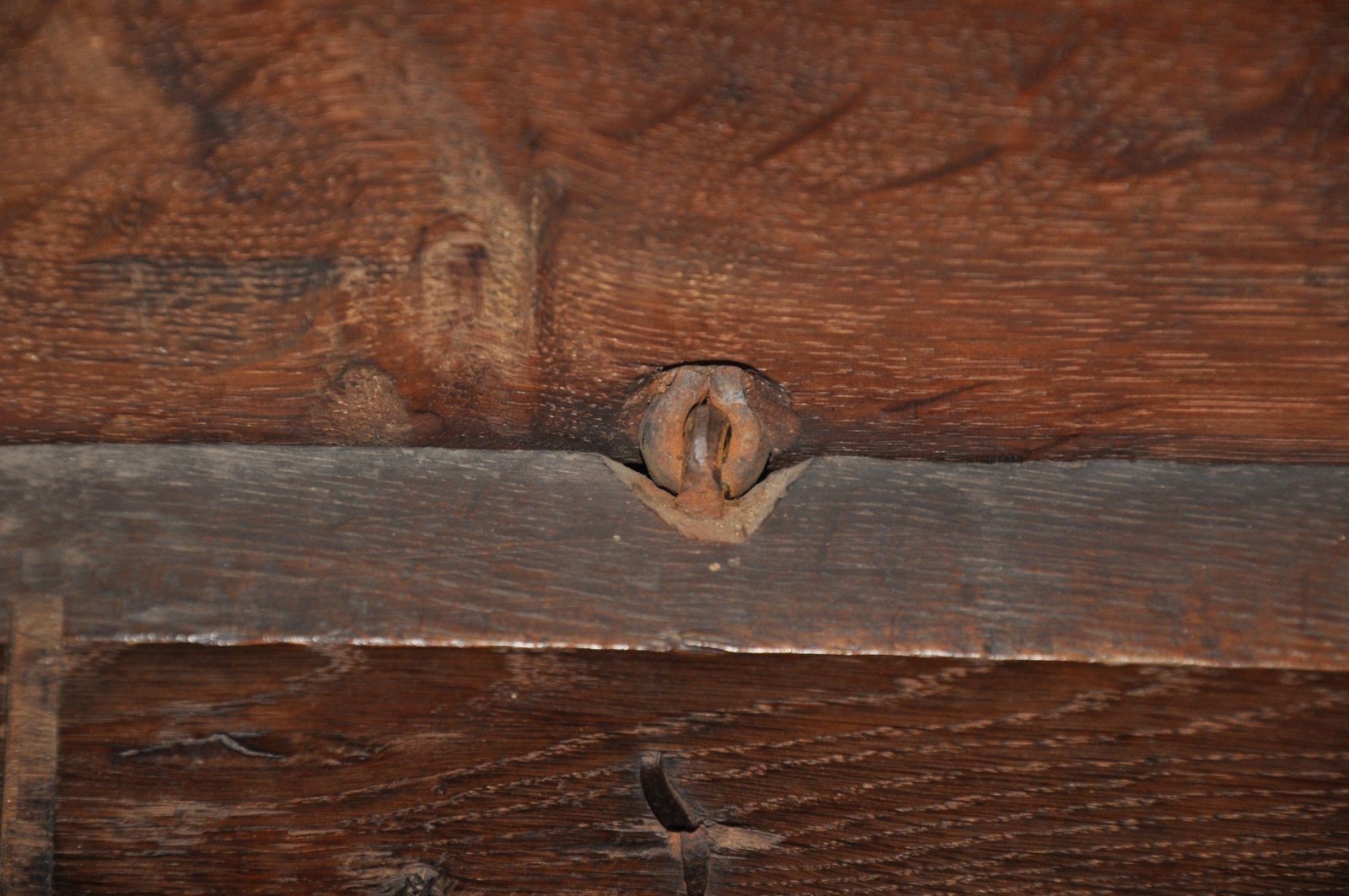 A lovely 17th Century Oak Coffer with very nicely carved thistle to the centre panel and Original hinges, good colour and patina in fine original condition.