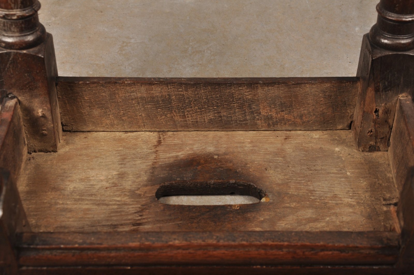 It is worth noting the very good dry surface to the underneath of the top and inside of the rails with the original pegs coming through just as we like to see.