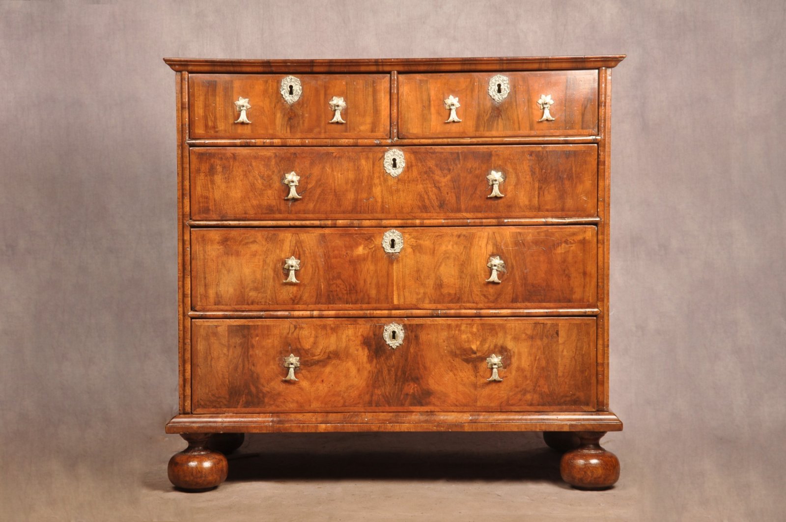 This is a beautiful William and Mary Walnut Chest of Drawers of lovely golden colour in very good condition.