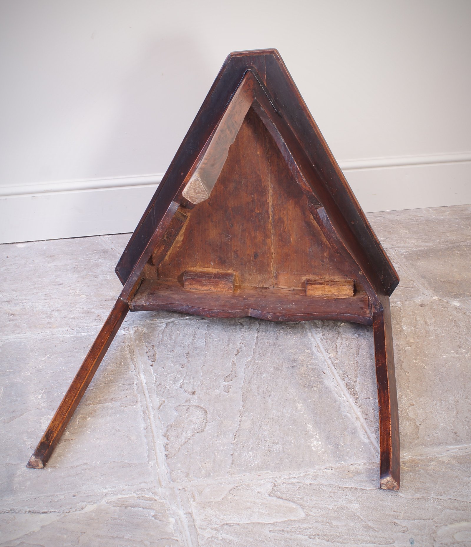 A rare and unusual cricket table with the original triangular top. Having a two-piece cockbeaded top supported on a three-legged base with ogee-shaped rails, all of a good colour and patination.