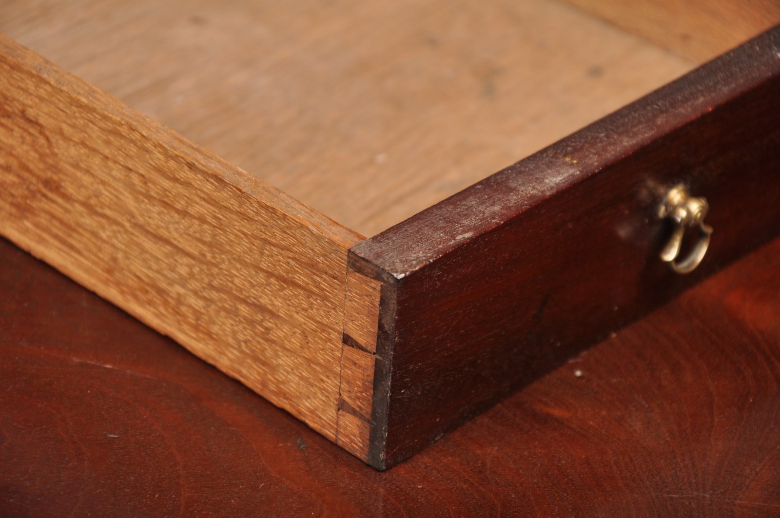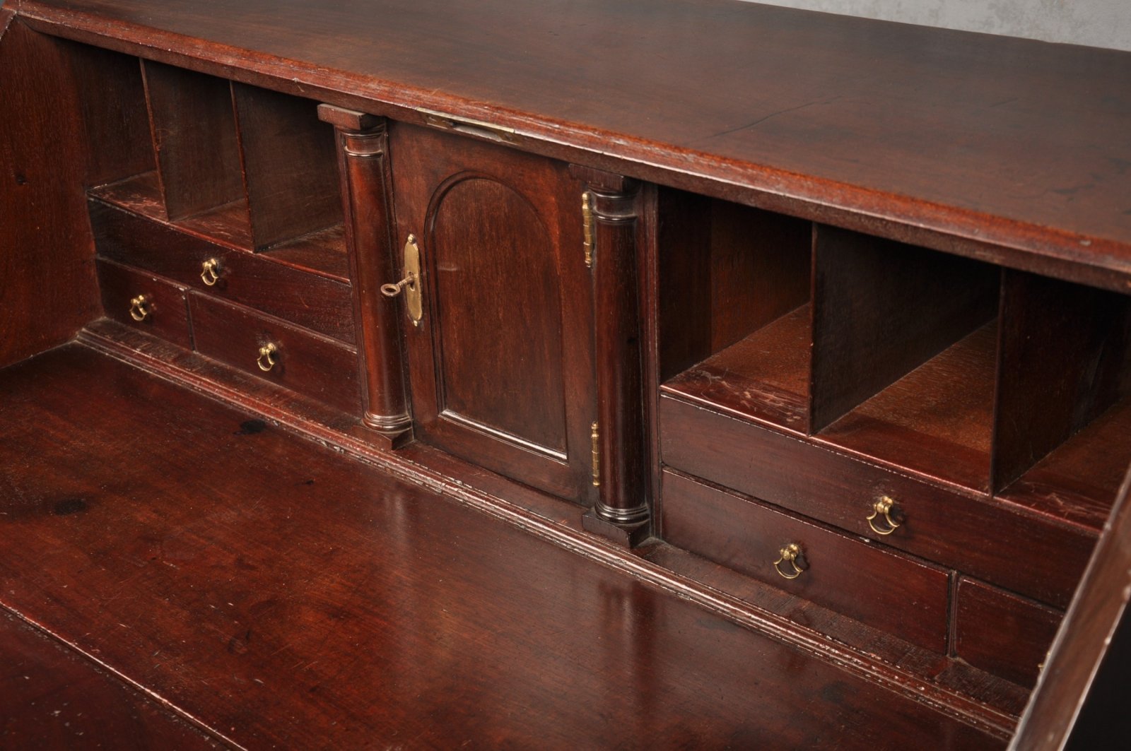 The original Oak drawer linings are in good clean condition and there are working keys to the fall and interior door.