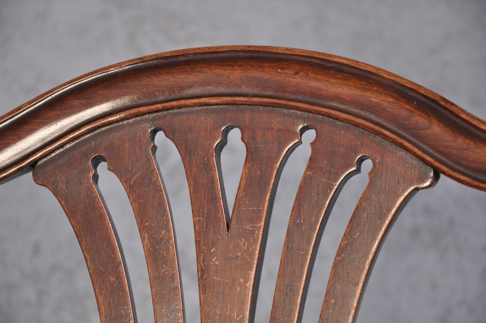 A quality 18th Century Hepplewhite Cuban Mahogany Armchair of superb colour with drop in seat. The well shaped carved arms mirroring the finely carved bead worked on the top rail and uprights surrounding the shaped splat on the chair back. There is also a fine bead applied with the moulding plane to the top of the seat rails and front legs. The Chairs design is simple and elegant, it really flows. In completely original condition even retaining the original shaped blocks to the inside of the seat rails.