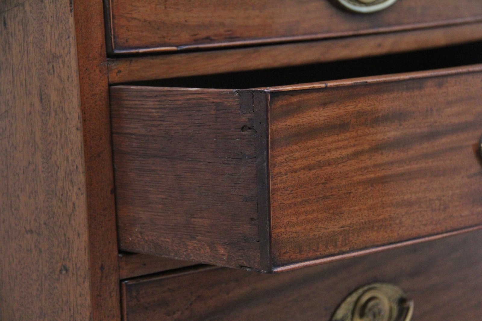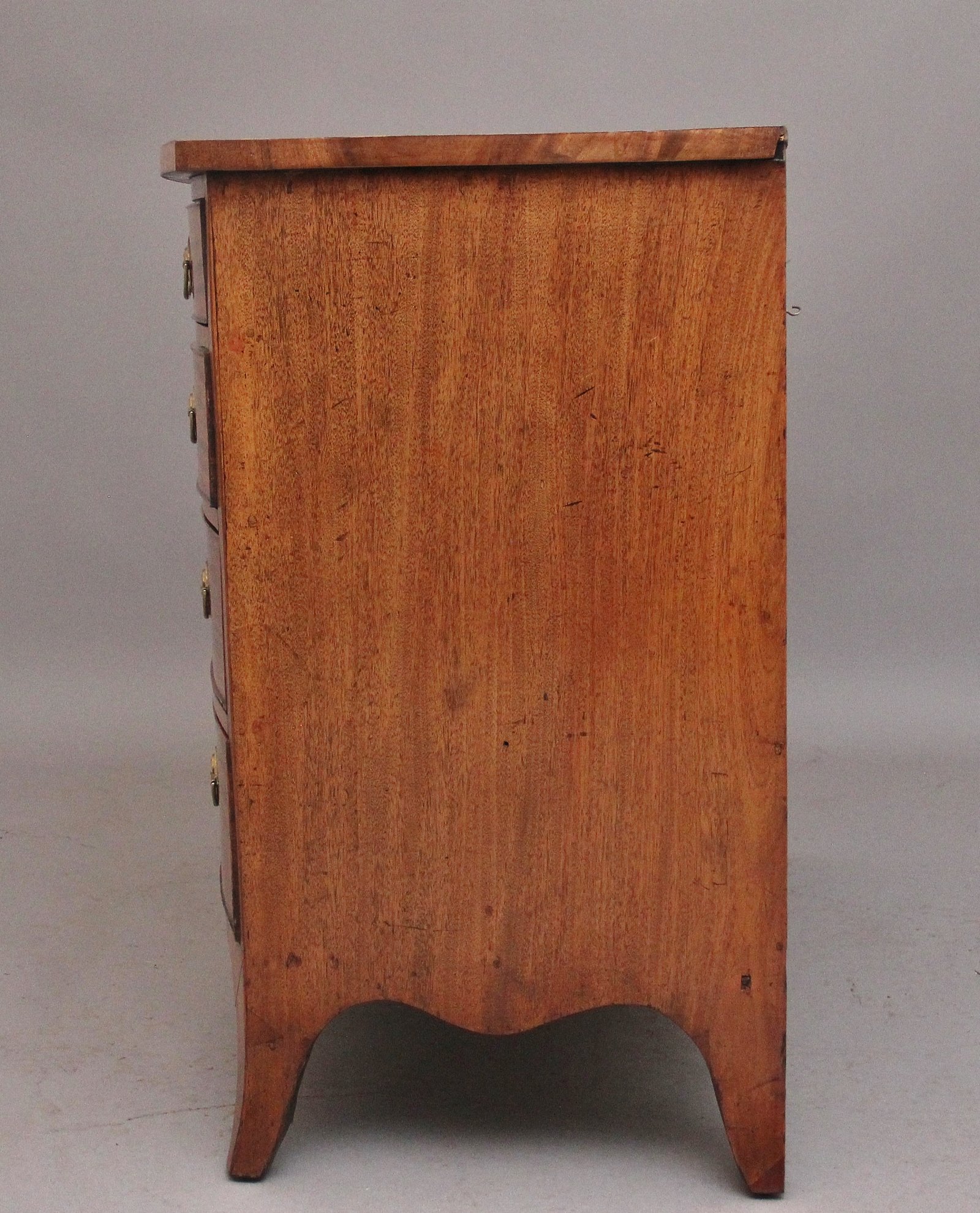 A superb quality early 19th Century mahogany bowfront chest of drawers, having a nice figured top above four graduated oak lined drawers with brass engraved oval plate handles, shaped apron below and supported on splay feet. Circa 1820.