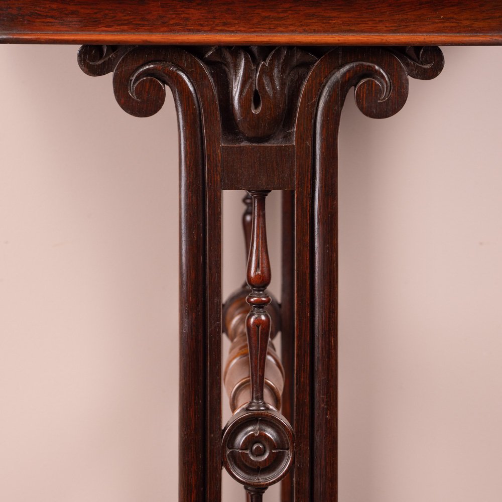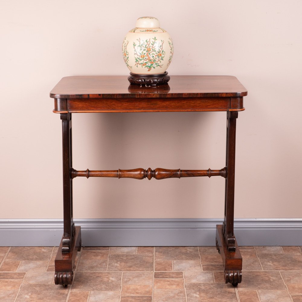 This fine quality early 19thC Rosewood Stretcher Table, has many fine details as evidence of the quality of the piece. The two end supports are finely carved and supplemented by some exquisitely turned decoration. Generous feet are deeply carved and have their original brass castors.