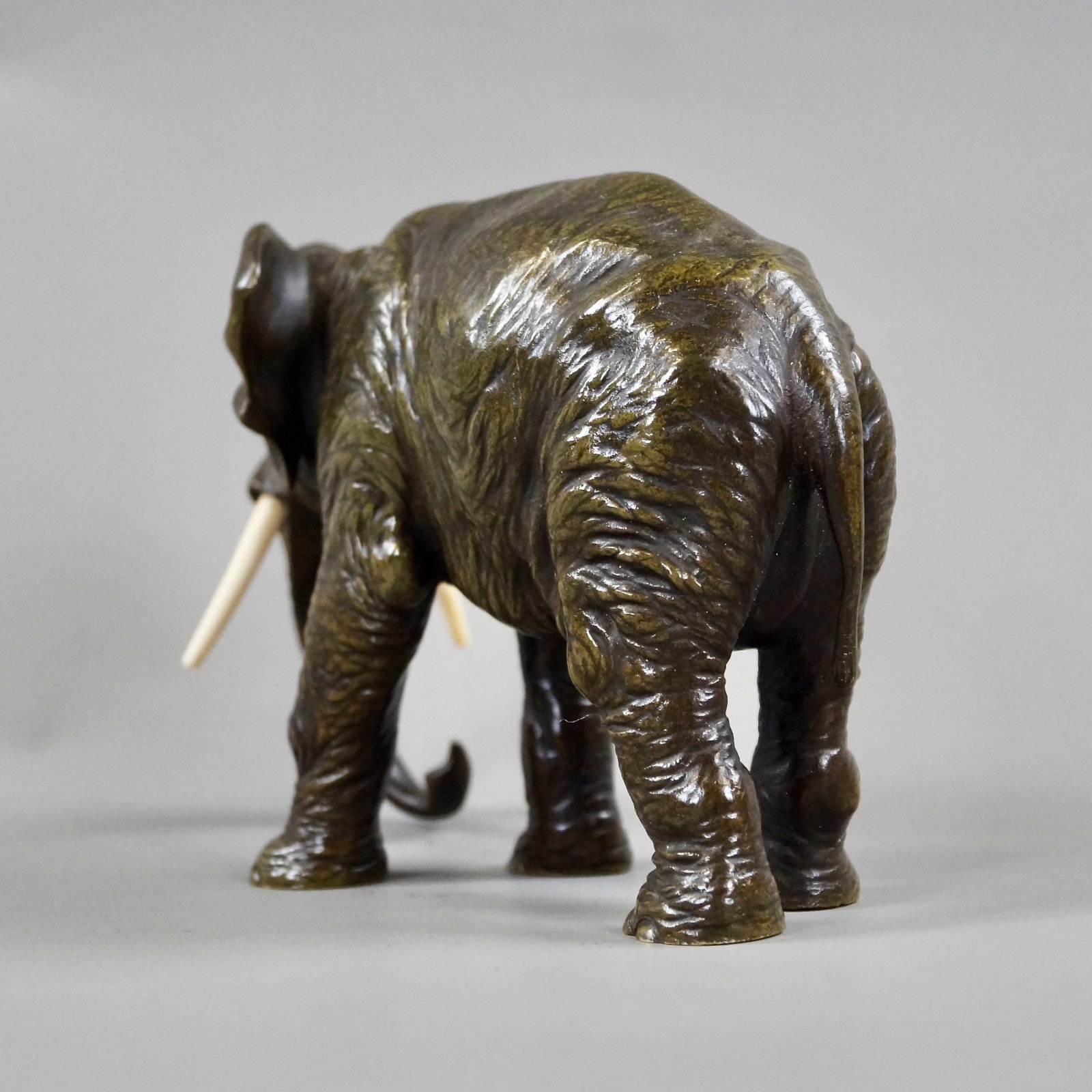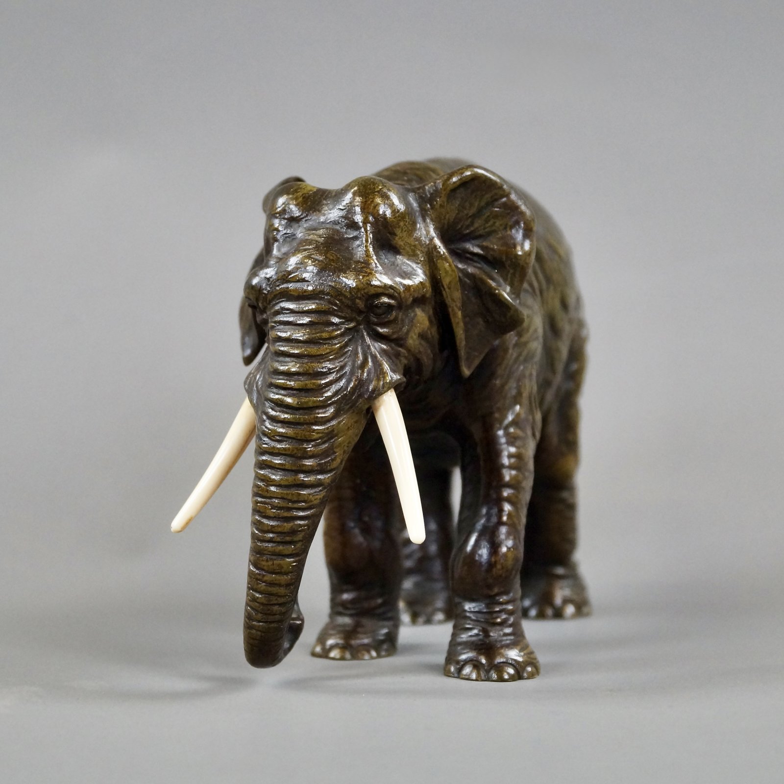 A small bronze Elephant attributed to Franz Xavier Bergmann (1861-1936) Beautifully detailed with ivory tusks and in very good and original condition. 100mm high, 140mm wide and 60mm deep. Austrian. Circa 1890.