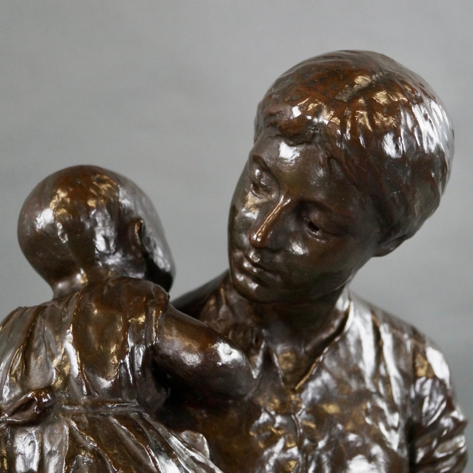A charming & large scale 19thC bronze group by Frederick Thomas Callcott (1854 – 11 May 1923). Depicting a mother with a child at her side carrying a book and a bag, and a baby in her arms. The bronze is very well modeled with fine detail and has good brown patination and is very heavy. 780mm high, 360mm wide and 230mm deep. Signed ''Fred Callcutt Londn 1889.