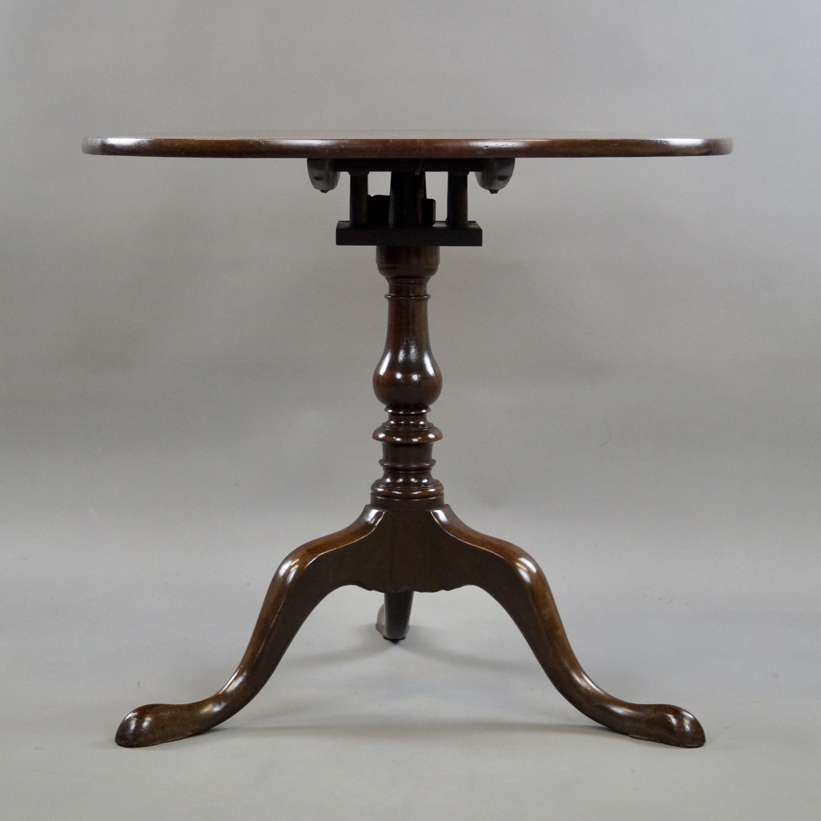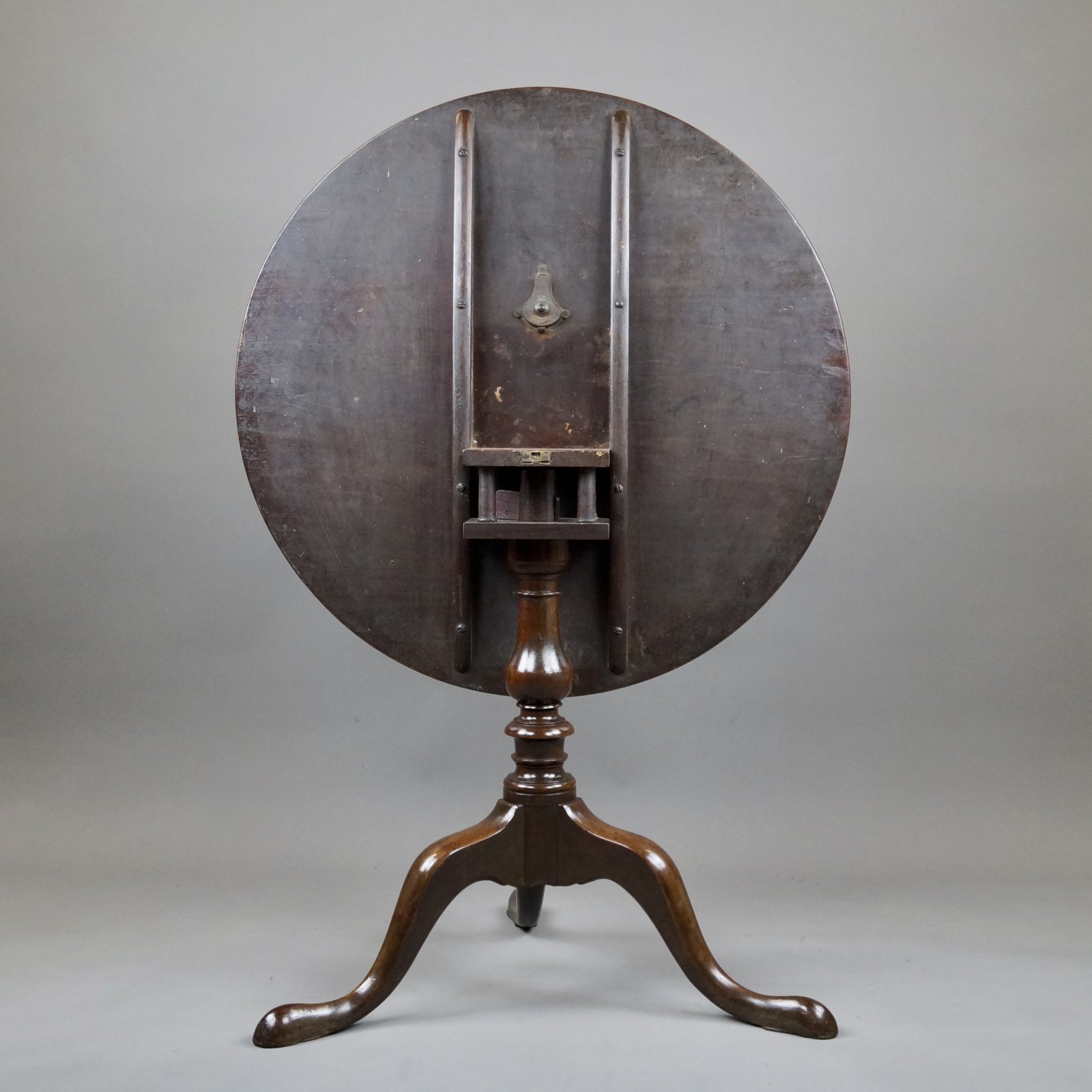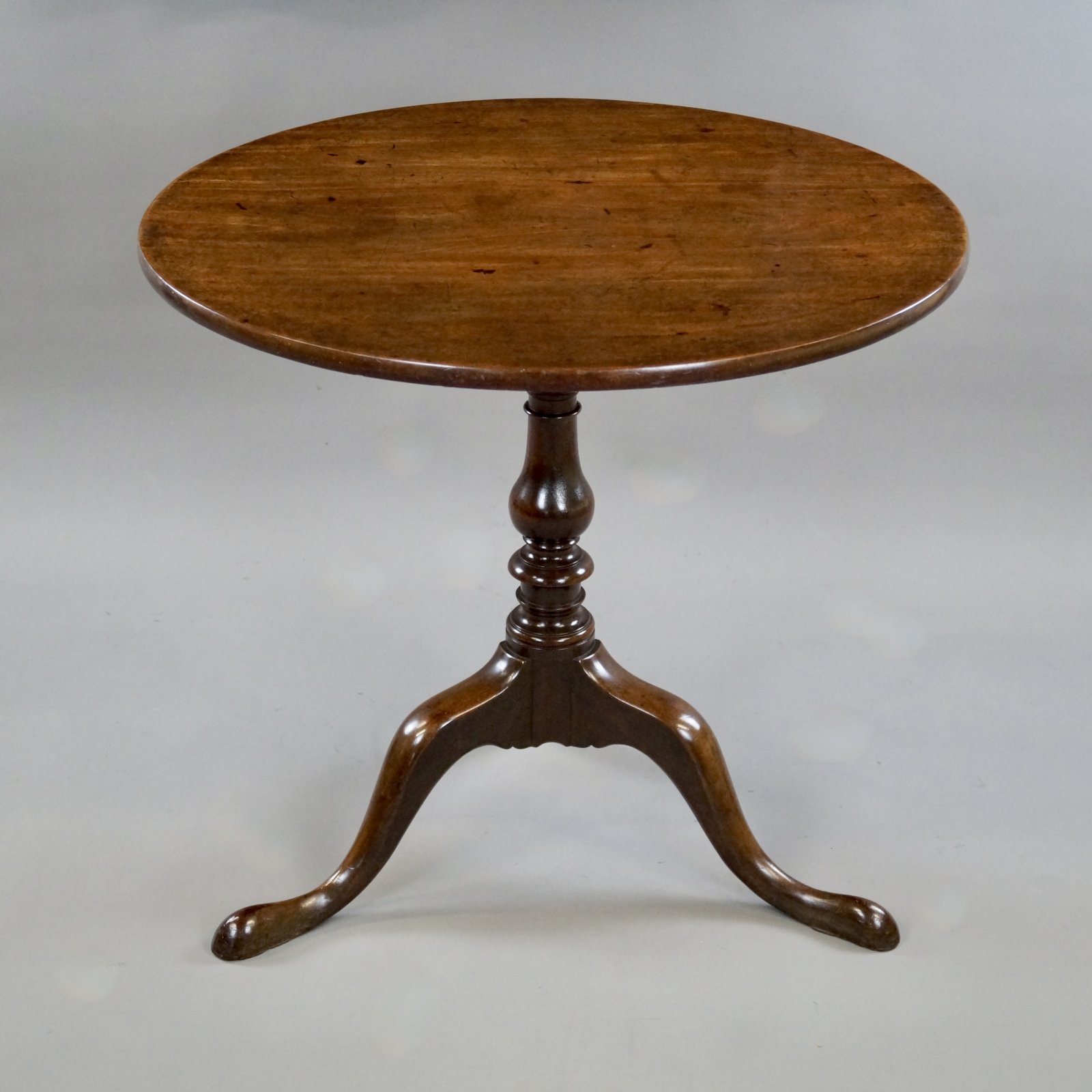 A George III Cuban mahogany tripod table with exceptional colour and patina. Raised on cabriole legs with pad feet and a turned baluster column supporting a bird cage block and circular top. The table is very good and original condition. 730mm high and 800mm diameter. English. Circa 1770.