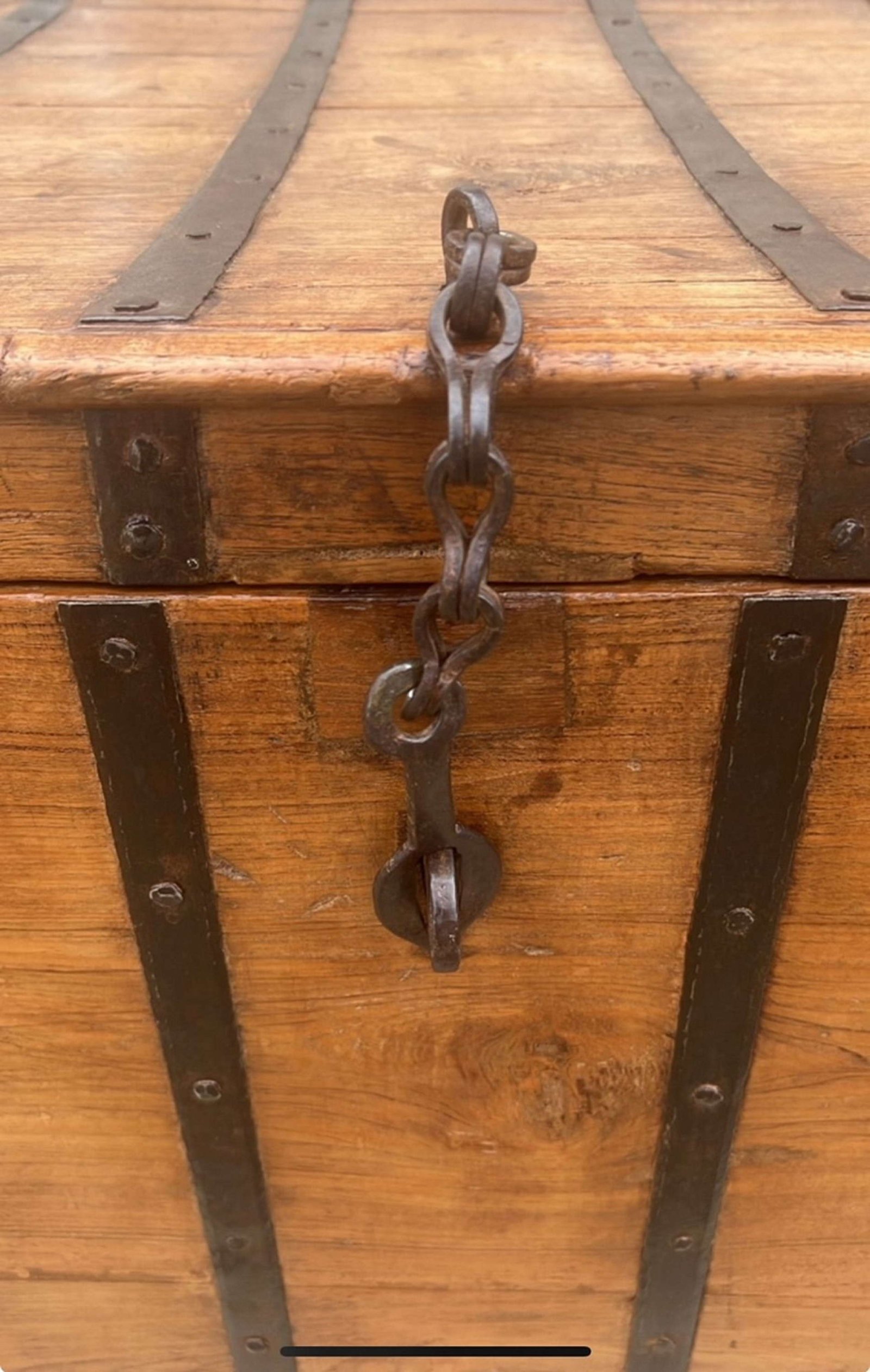 A Good Sized Victorian Oak Silver/Campaign Chest with cast iron strapping , a smart attractive trunk useable for a multiple of purposes