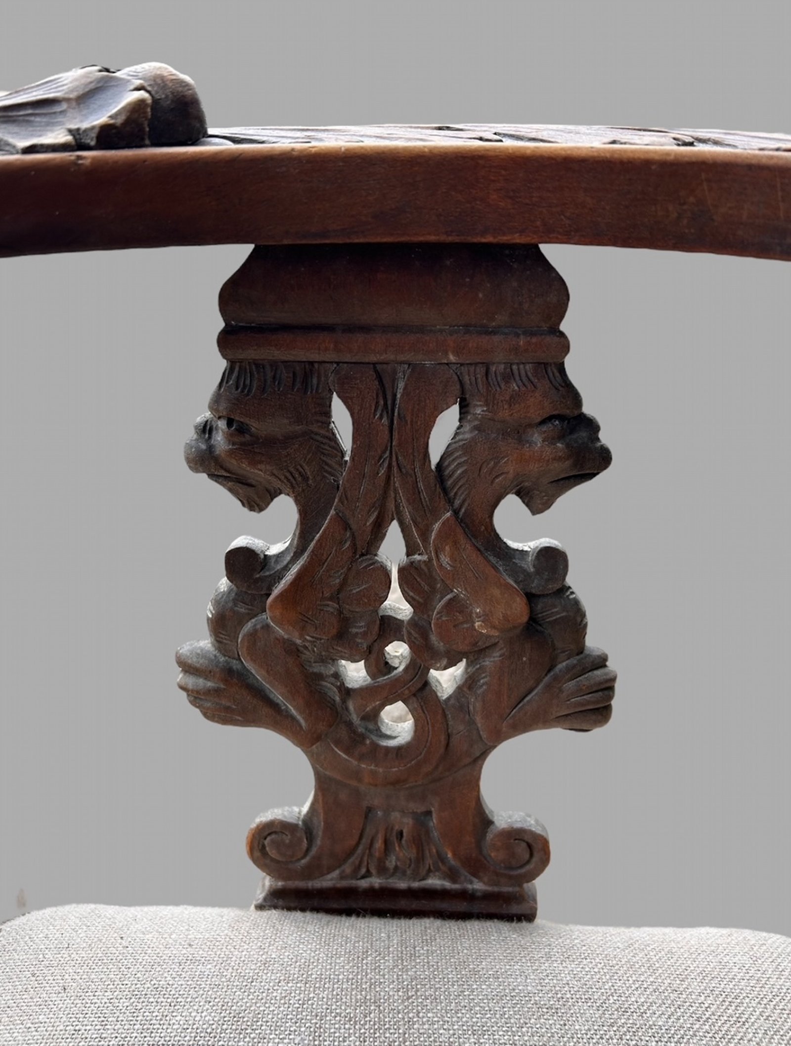 A Lovely Carved Italian Walnut Figural Corner Chair, c.1860