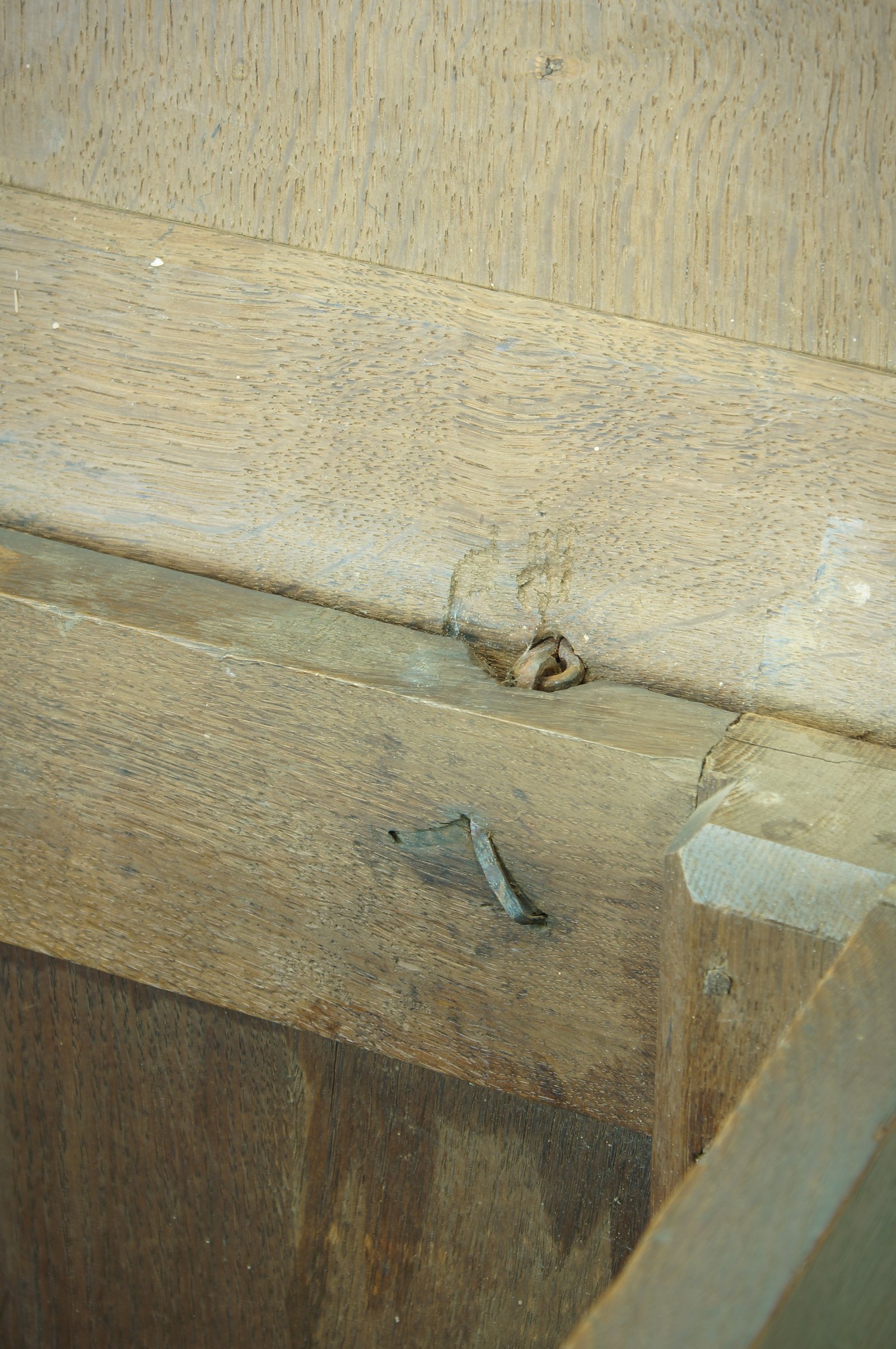 The brass handles are later additions but look to have been added in the early 18th Century rather than the single drawer pull.