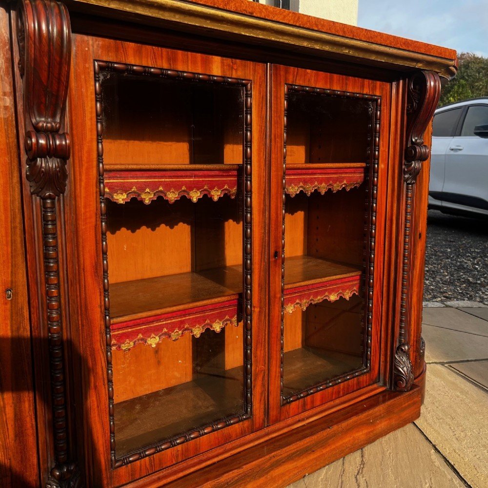 A Stunning Quality Early Victorian Period Gonçalo Alves And Amboyna Bookcase/credenza