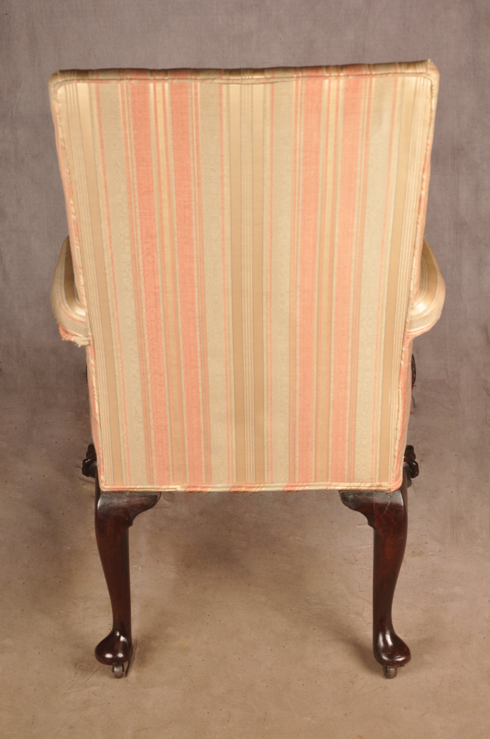 See shipping detailsAn absolutely beautiful full period 18th Century Mahogany Gainsborough Library Armchair of good colour and patina. Superbly carved with scrolling acanthus leaf to the tops of the arms and knees, finishing with perfectly executed bold claw and ball feet. standing on good quality replacement casters.