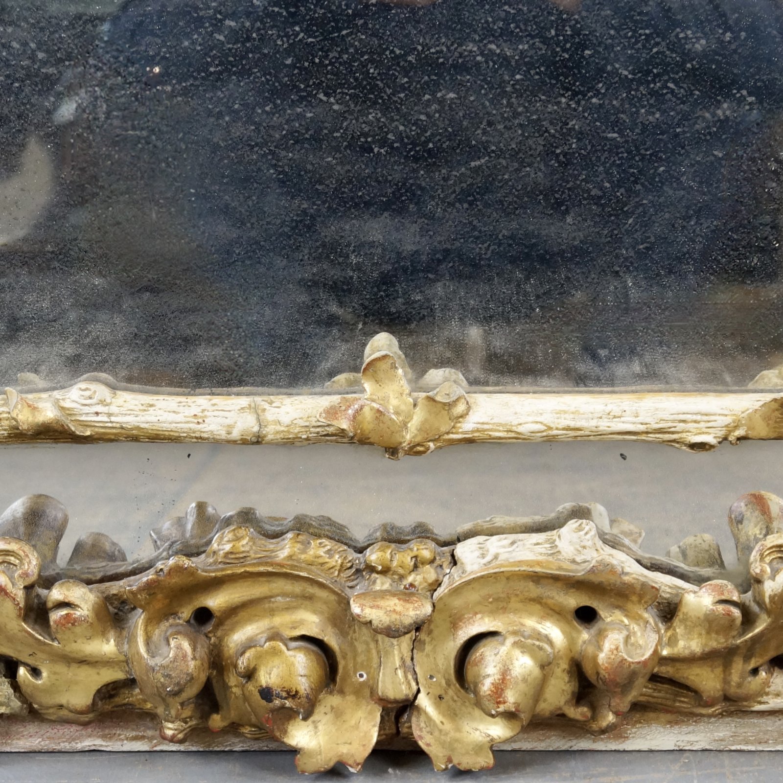 A very large Louis XVI late 18th century carved wood gilt and paint decorated wall mirror. Of very impressive scale and in very good and original condition. 1780mm high, 1260mm wide and 80mm deep. French. Circa 1790