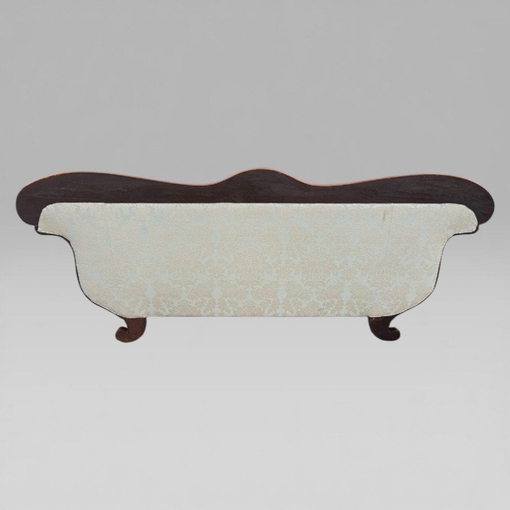 Generous in scale, this sofa comfortably seats at least three people. While rooted in early 19th-century design, its strong lines and classical form allow it to sit beautifully within modern interiors. It makes an excellent statement piece in a spacious living room, hallway, or designer-led setting — a natural talking point for a family home and a compelling choice for interior designers seeking character, history, and sculptural presence.