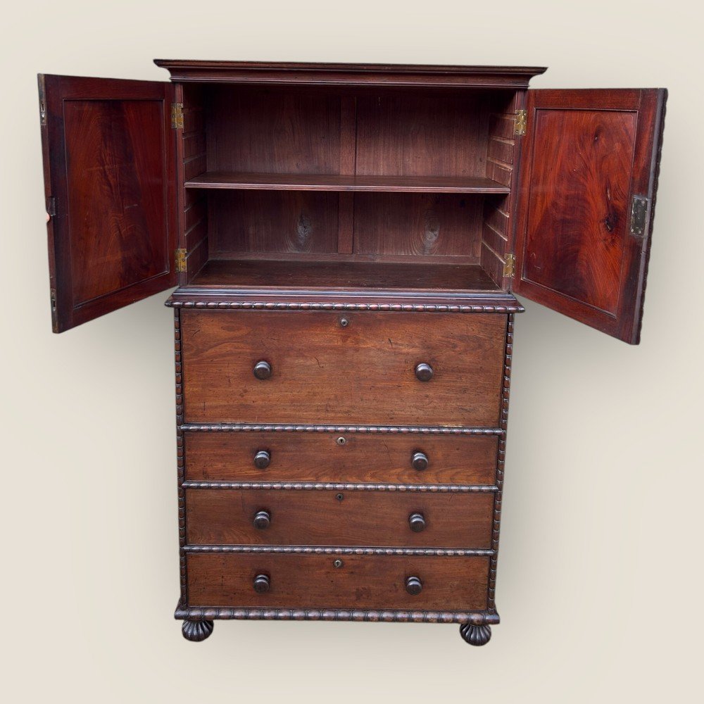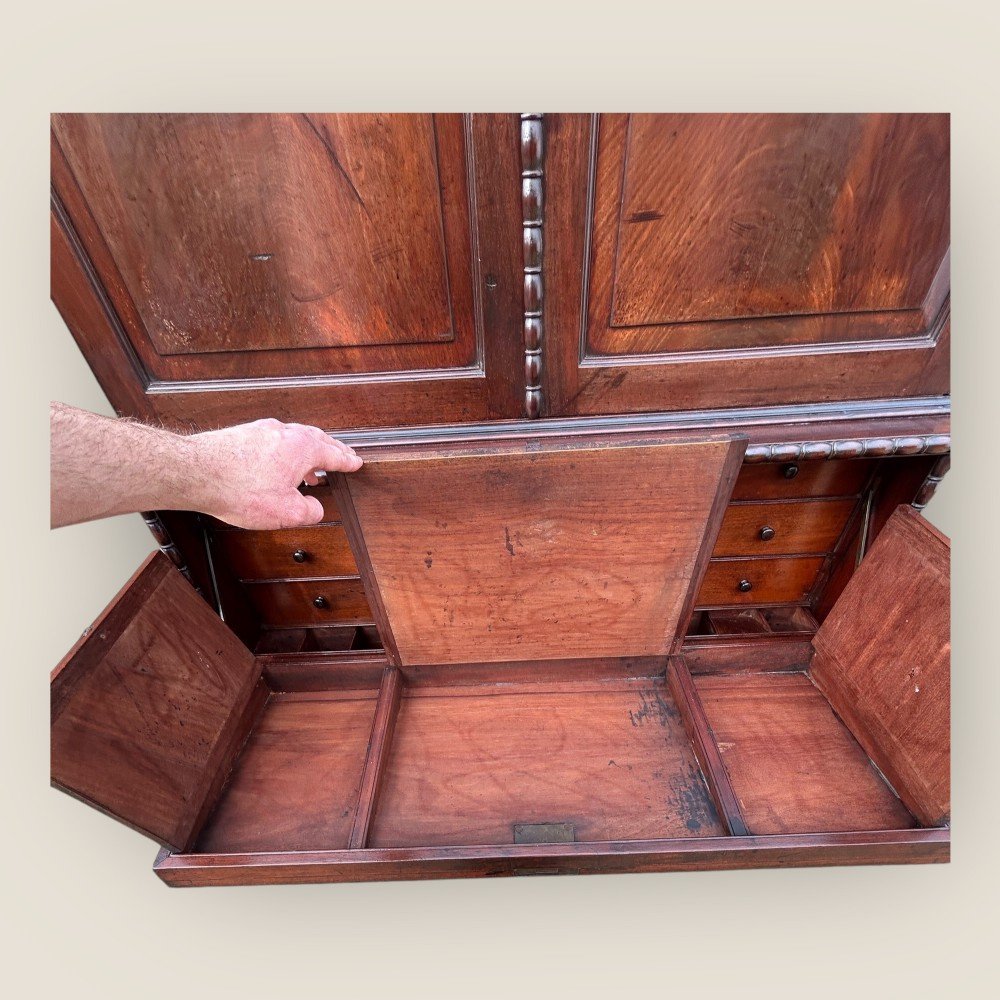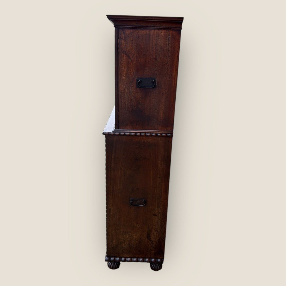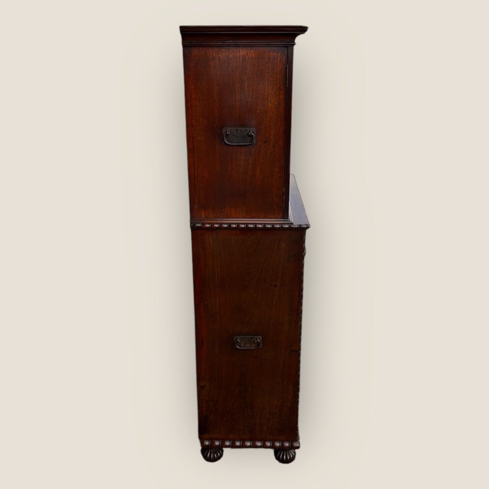 Antique 19th Century Padouk Anglo-indian Campaign Secretaire Chest & Cupboard