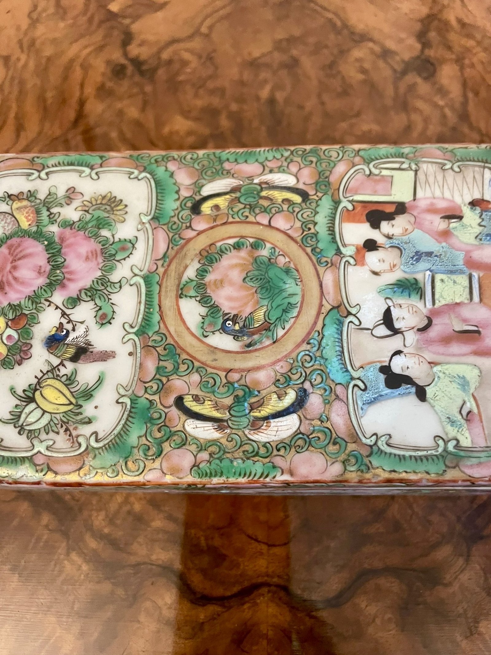 Antique 19th Century Quality Chinese Famille Rose Canton Lidded Pen Box