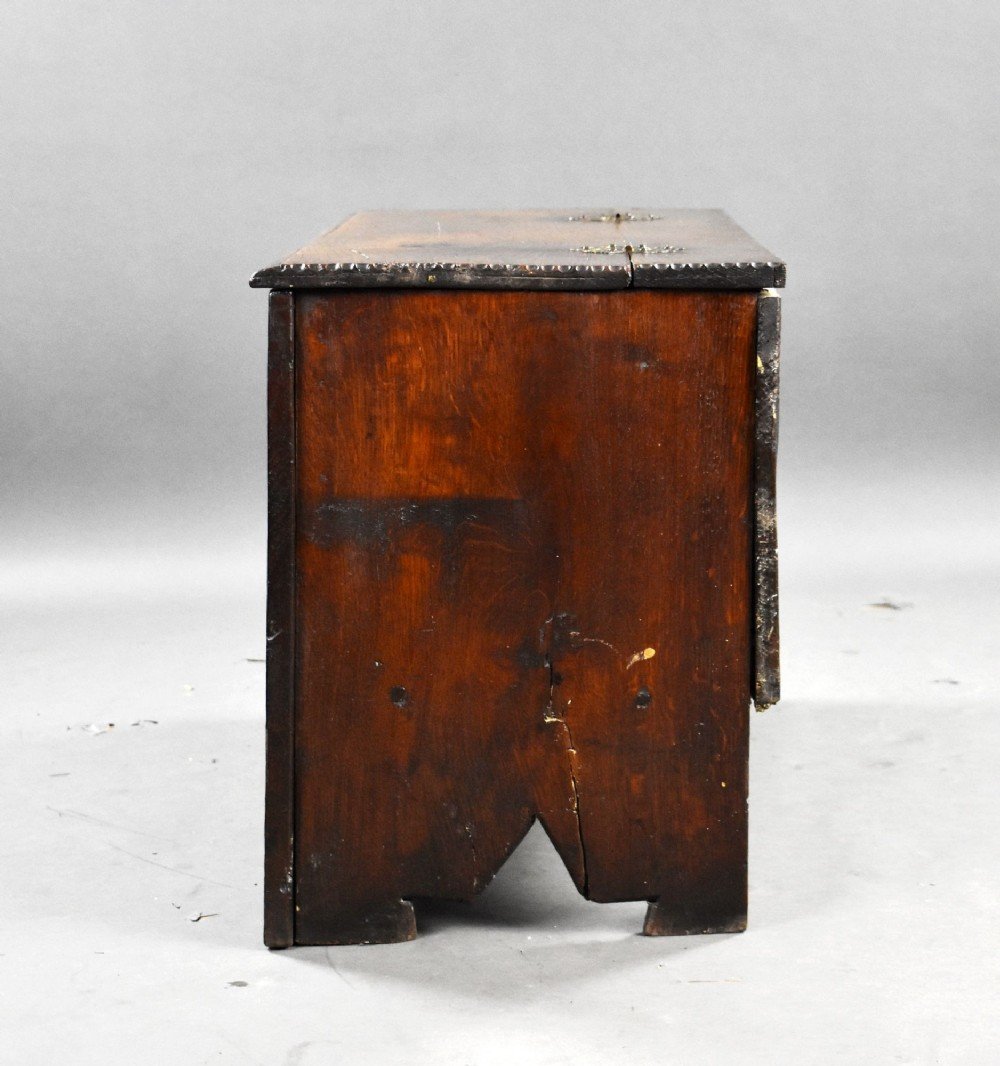 A charming antique oak coffer, dating from the late 17th to early 18th century. The front is richly decorated with twin arched panels flanked by carved pilasters and detailed with foliate motifs, all beneath a row of carved lunettes. The plank top opens to reveal spacious storage, making it both decorative and functional. With its deep colour, patina, and traditional form, this piece exemplifies early English craftsmanship and would sit beautifully in a hallway, living room, or period interior.