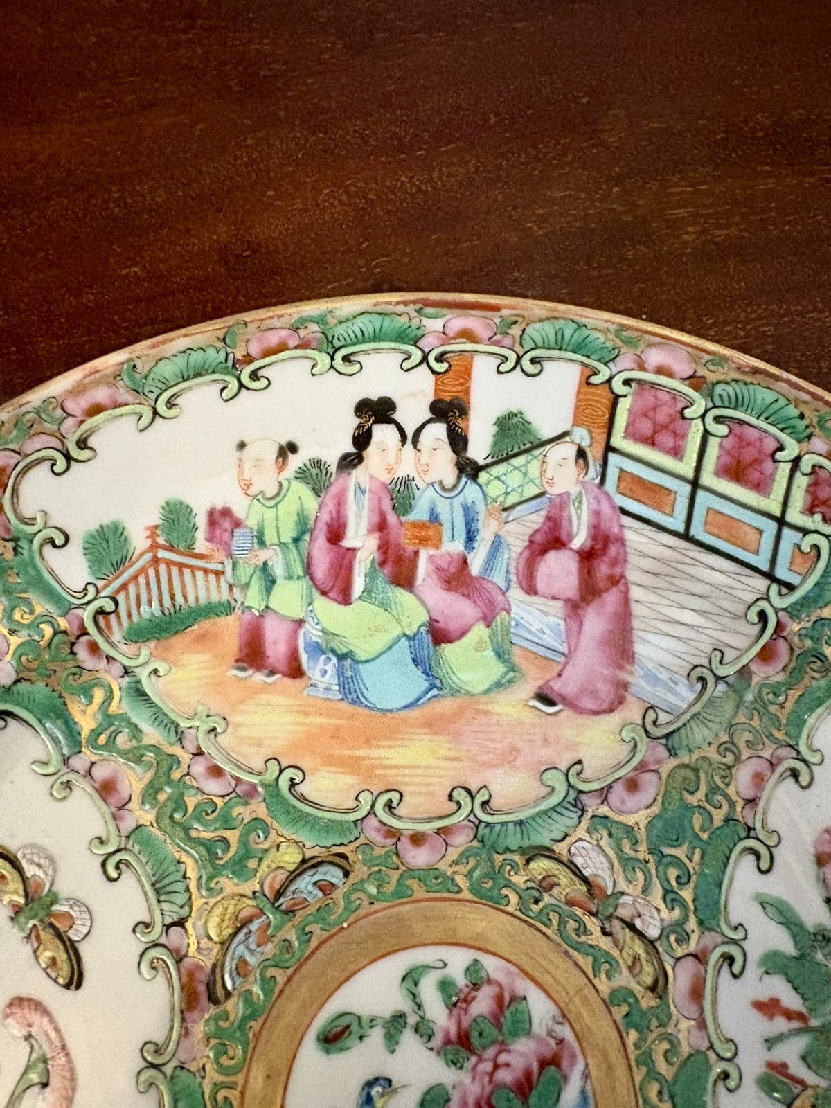 The enamels remain vibrant with good detail throughout, and the central medallion is particularly well executed. A lovely decorative plate and an excellent example of 19th-century Chinese export artistry. In lovely condition with no repairs, chips or cracks.