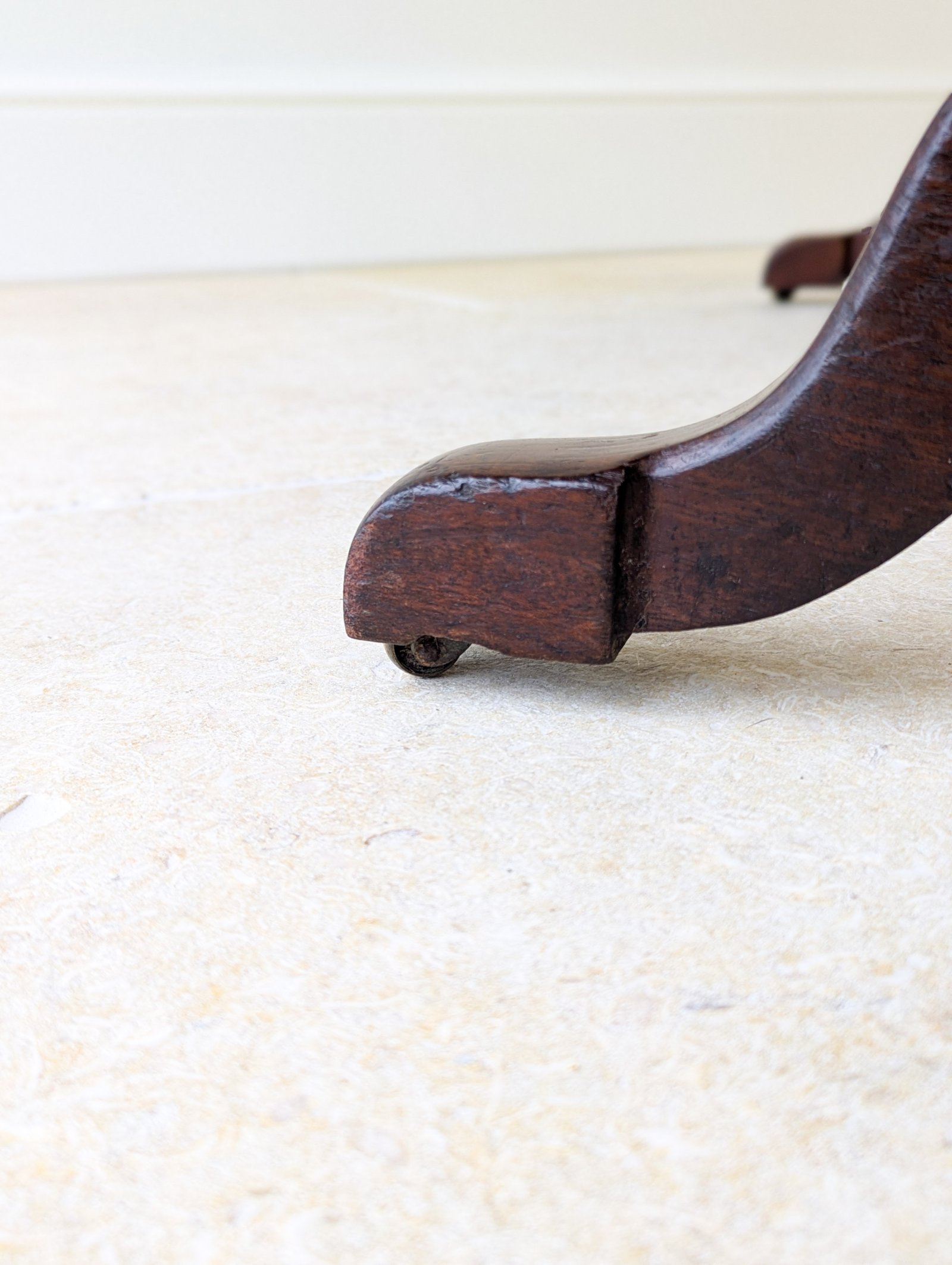 The Dublin firm of J. Kerr & Co. was active on Stafford Street during the mid-nineteenth century, exhibiting fine cabinet furniture at the Irish Industrial Exhibition of 1853. Their work is noted for its quality mahogany and restrained Regency-influenced design, both evident in this example.