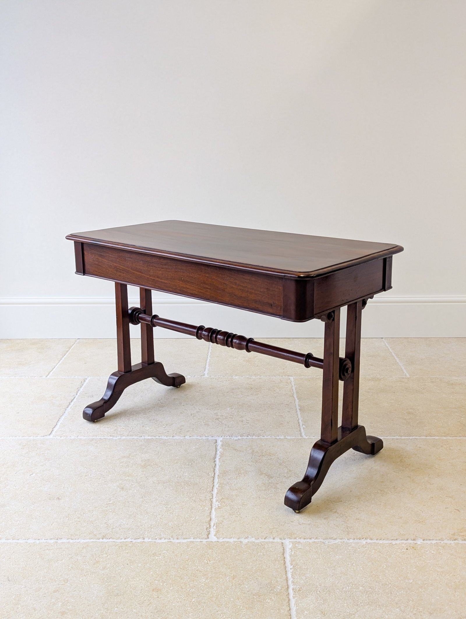 The table displays the enduring Regency influence favoured in mid 19th century Ireland, combining lightness of form with excellent timber and proportion. Sophisticated and practical in scale, it serves equally well today as a writing or library table, or as a refined console. Being finished on all sides it is also suited as a centrepiece within a living or study setting.