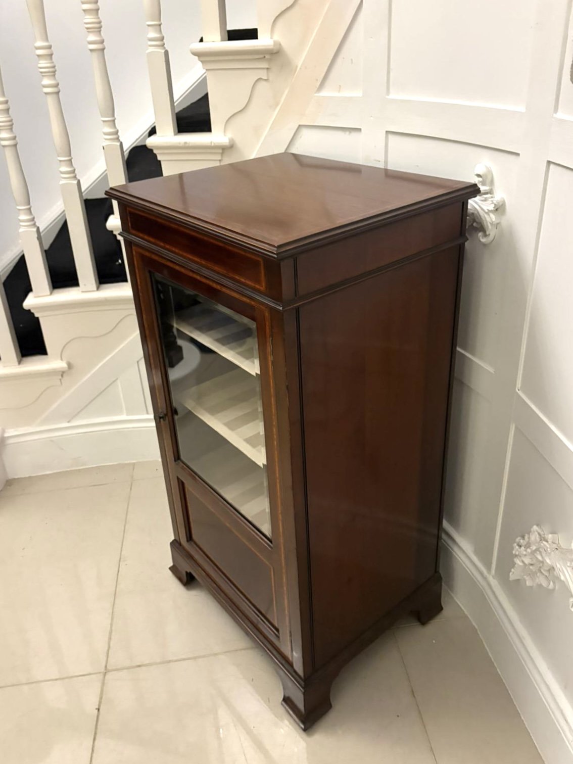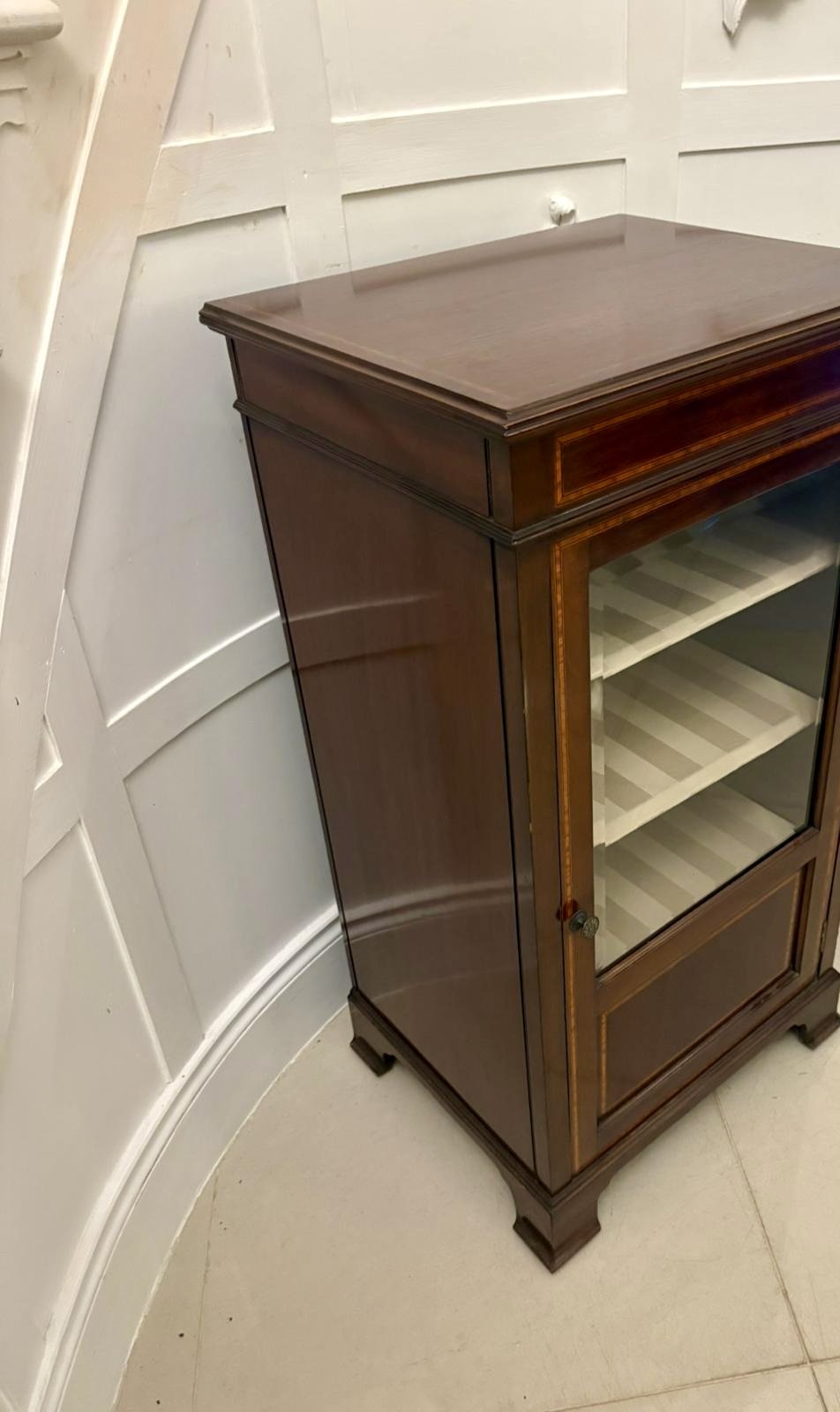 Antique Edwardian Mahogany Display Cabinet with Satinwood Inlay