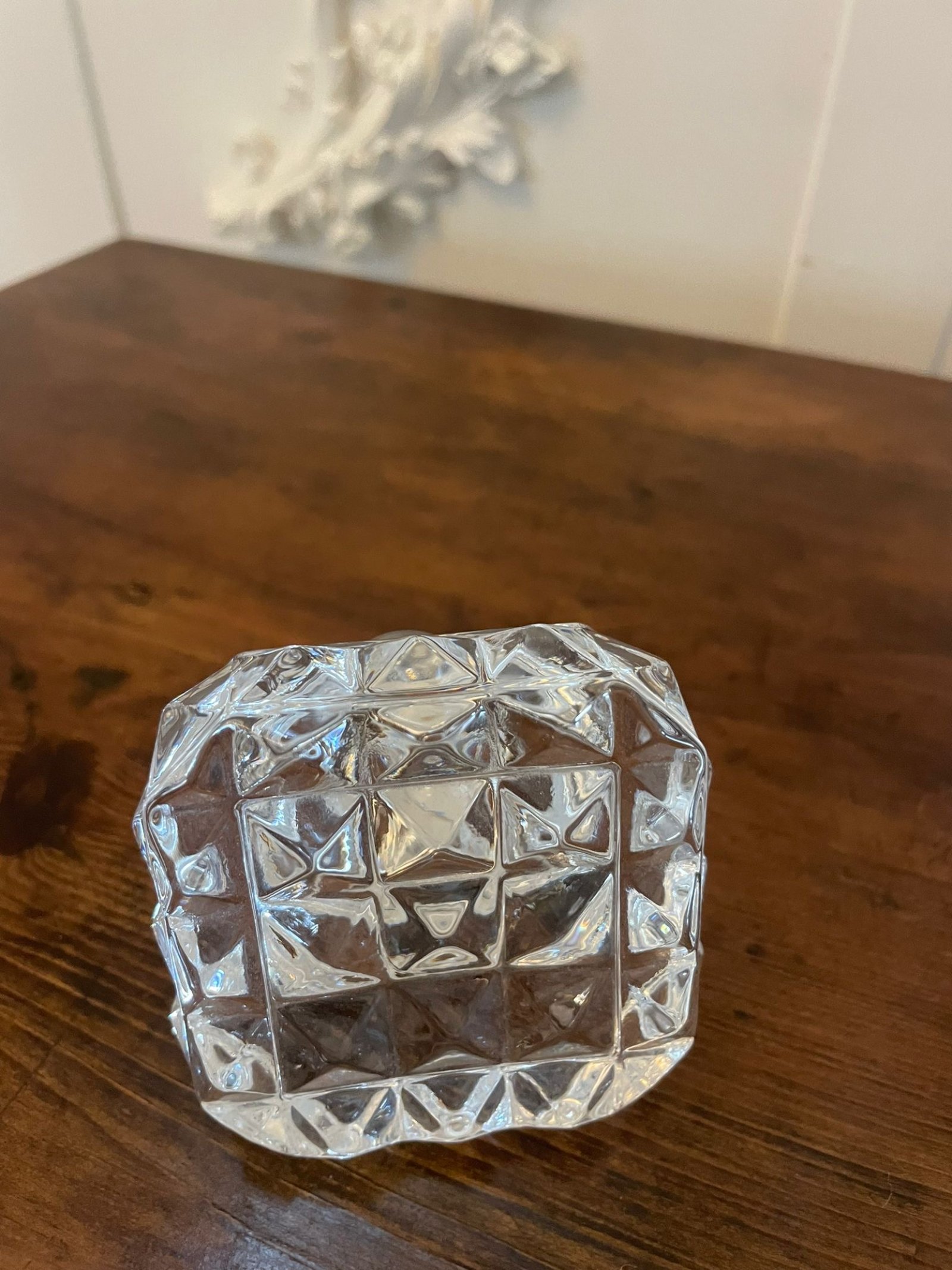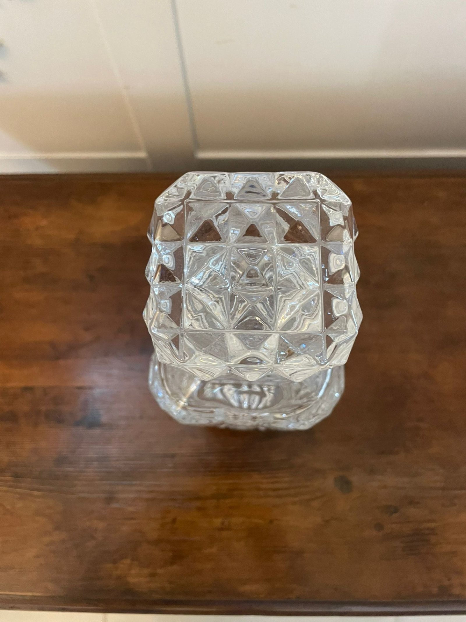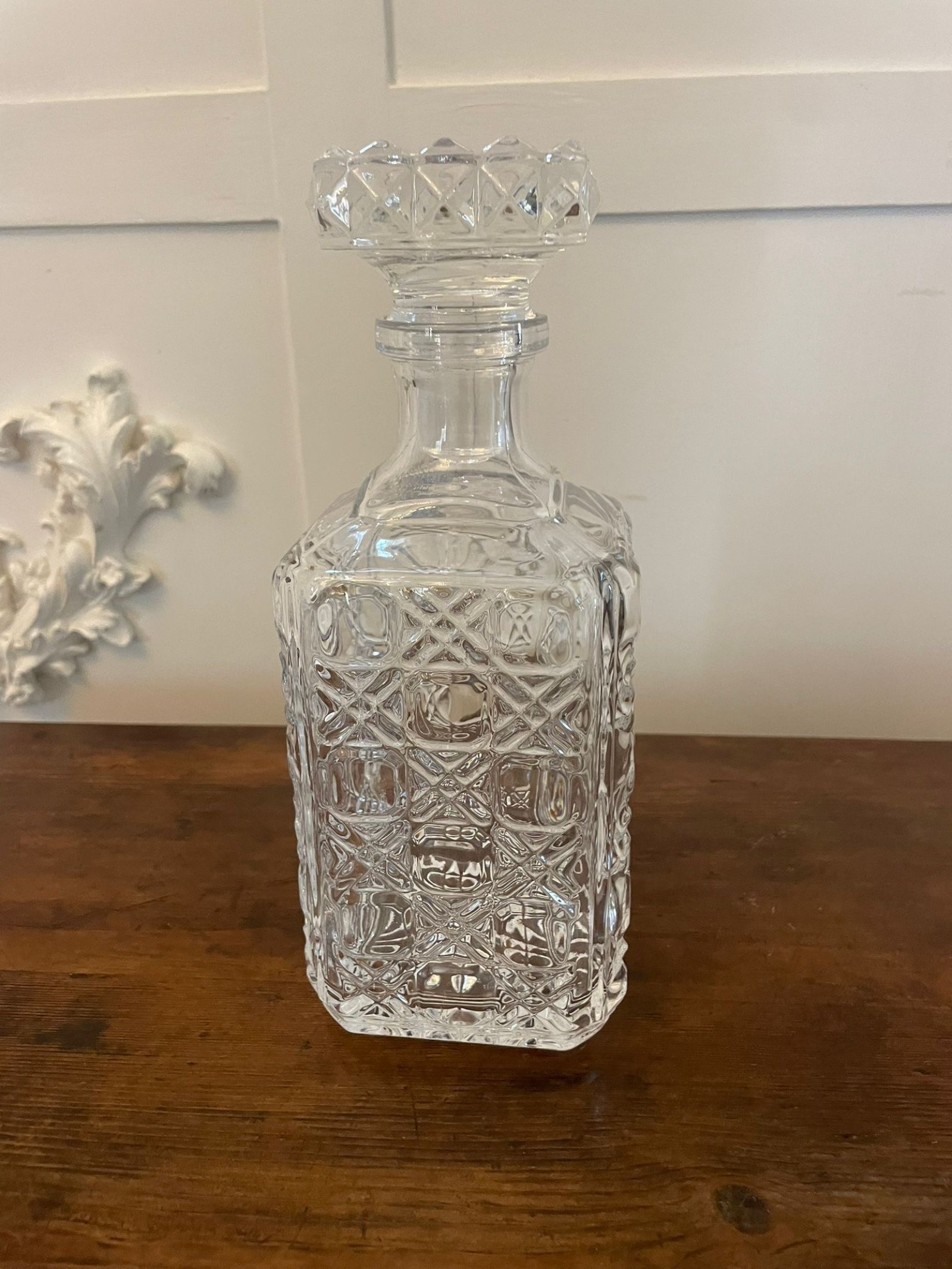 Antique Edwardian quality cut glass decanter having a square shaped cut glass decanter with the original square stopper