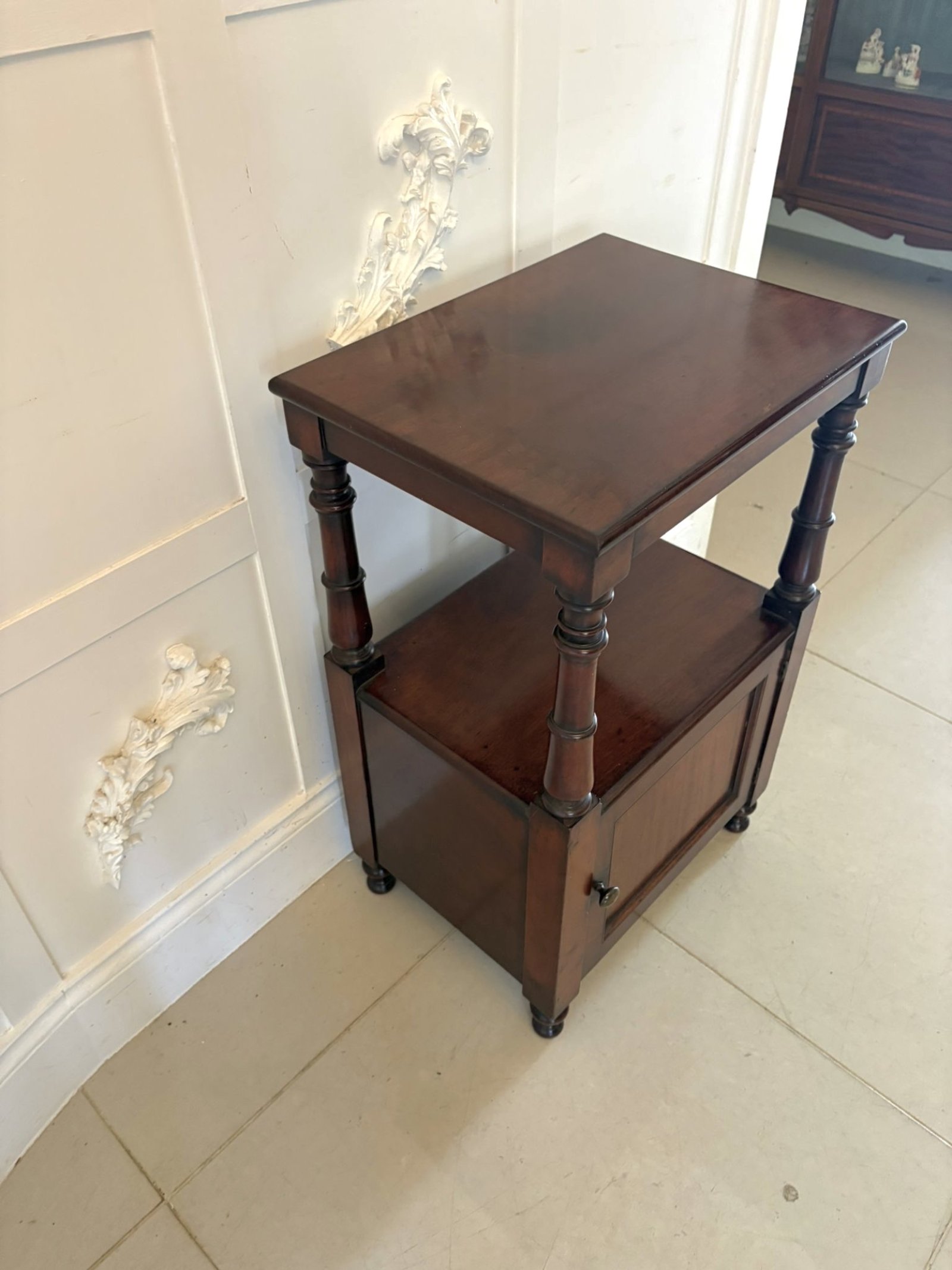 Today it makes a highly versatile piece, ideal as a bedside table, lamp stand or compact side cabinet, offering useful storage while retaining its original character.