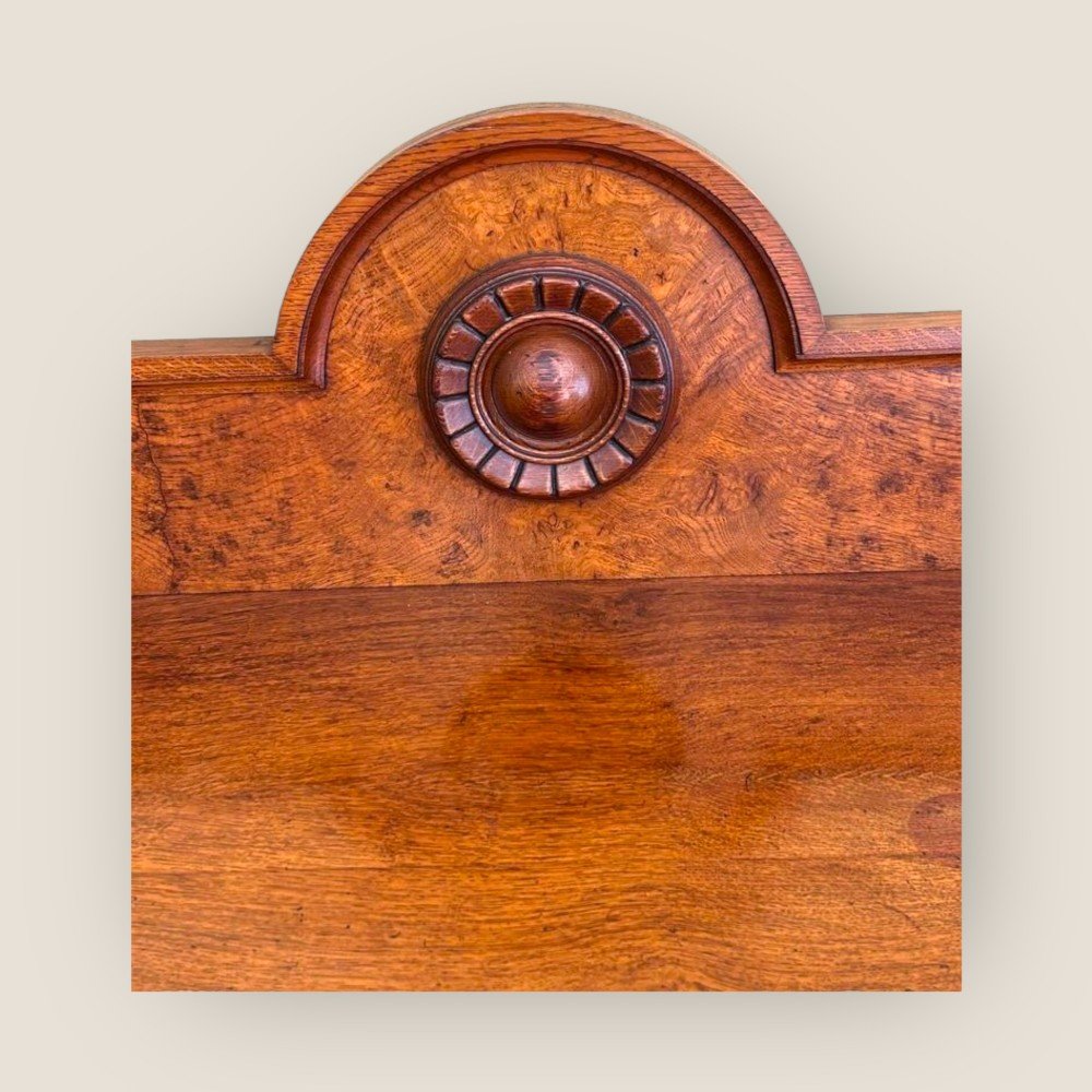 A Victorian Pollard Oak Sideboard With 3 Doors, and drawers in the interior. The Top shelf supported by two columns.