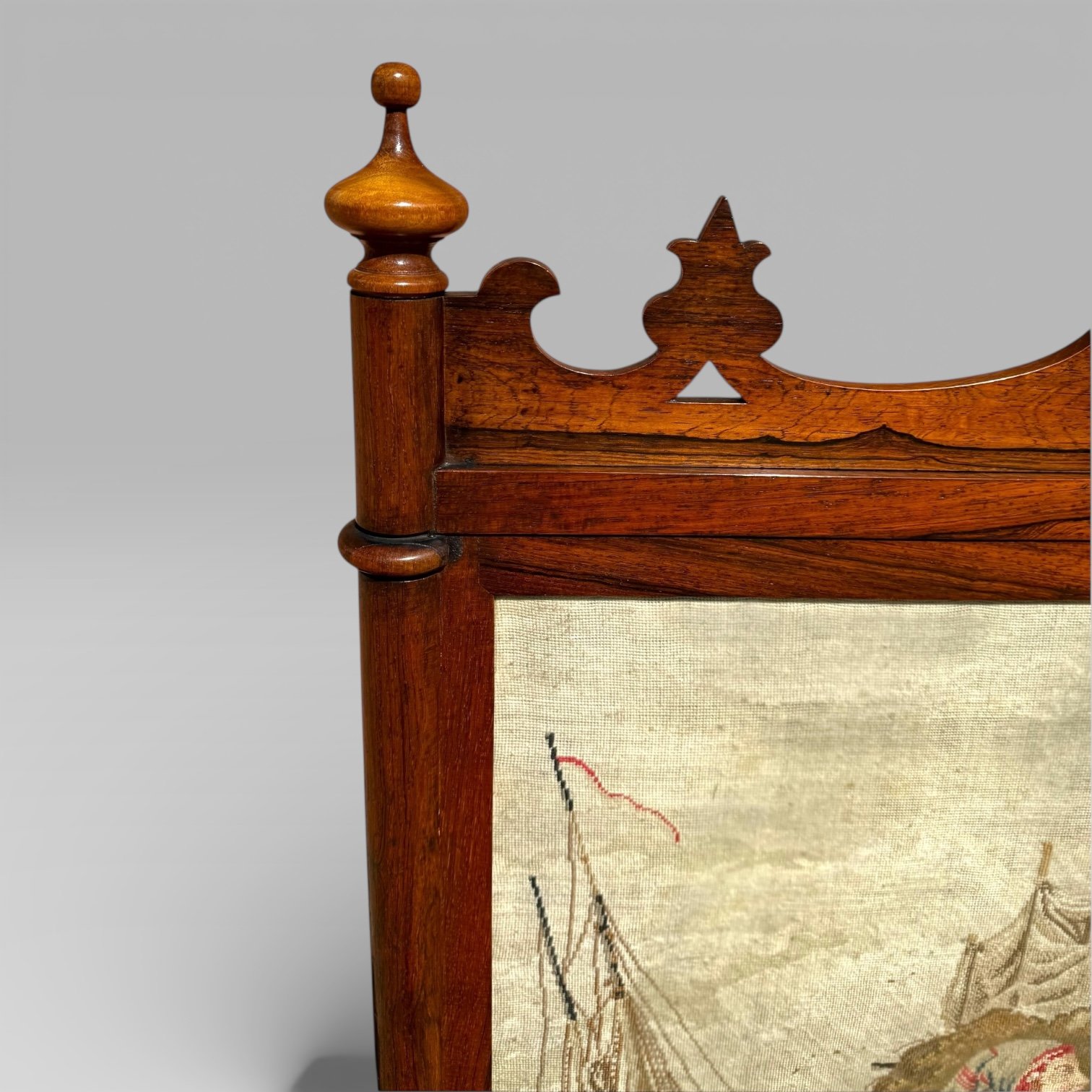 Antique English Victorian Rosewood & Needlework Cheval Fire Screen