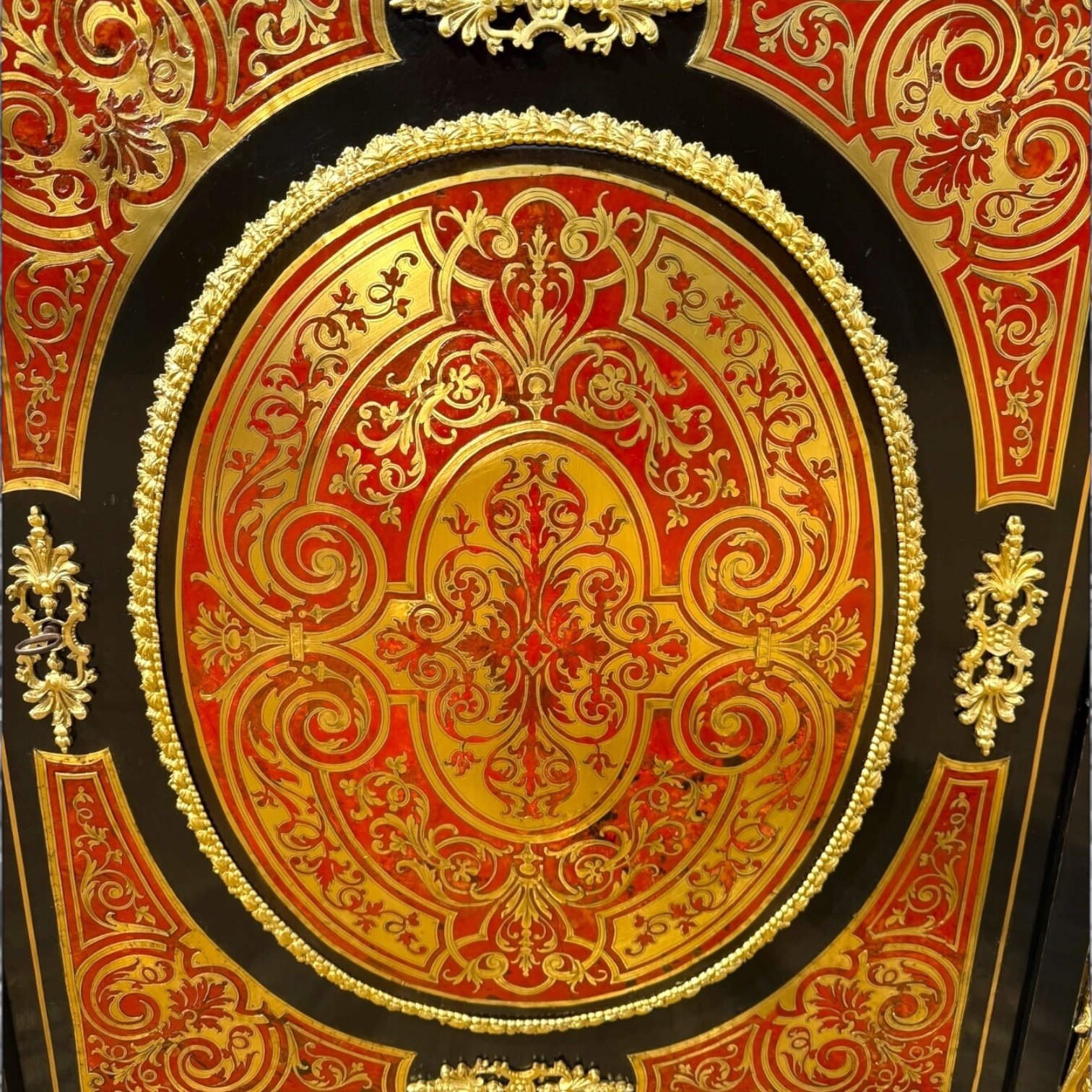 Antique French Napoleon III Ebonised Tortoiseshell Boulle & Marble Pier Cabinet