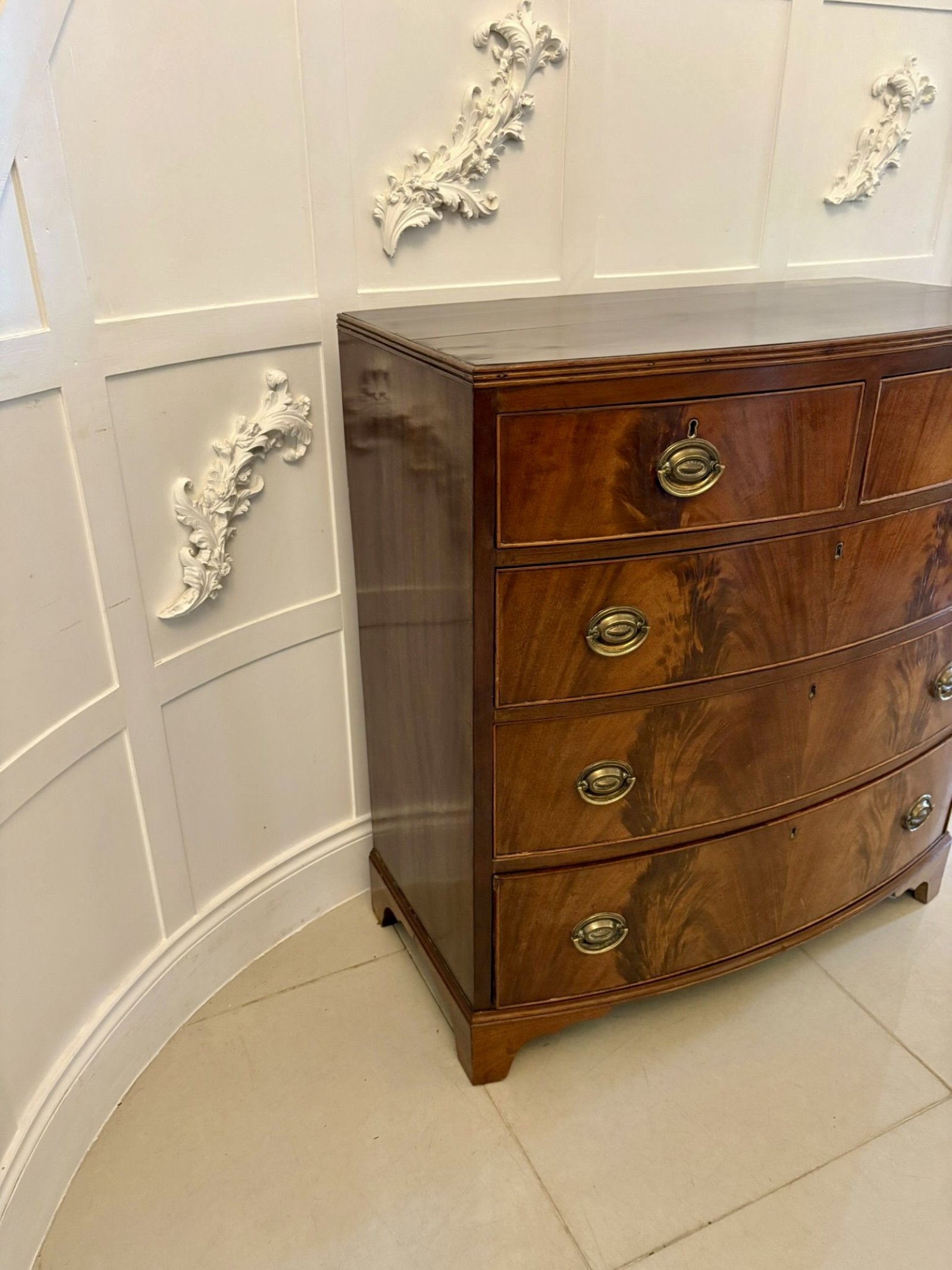 Antique George III Quality Figured Mahogany Bow Fronted Chest of 5 Drawers
