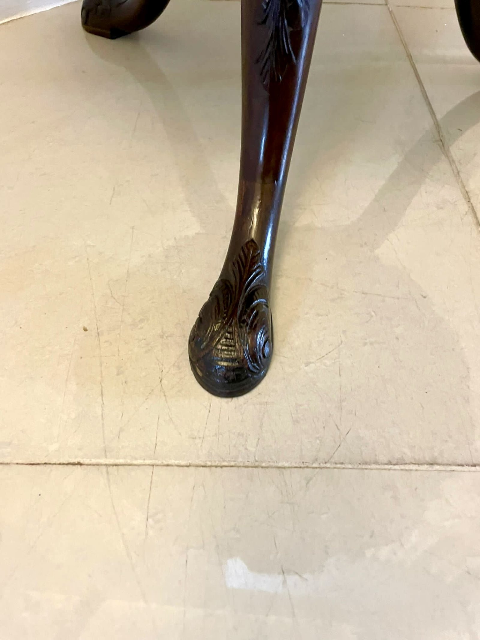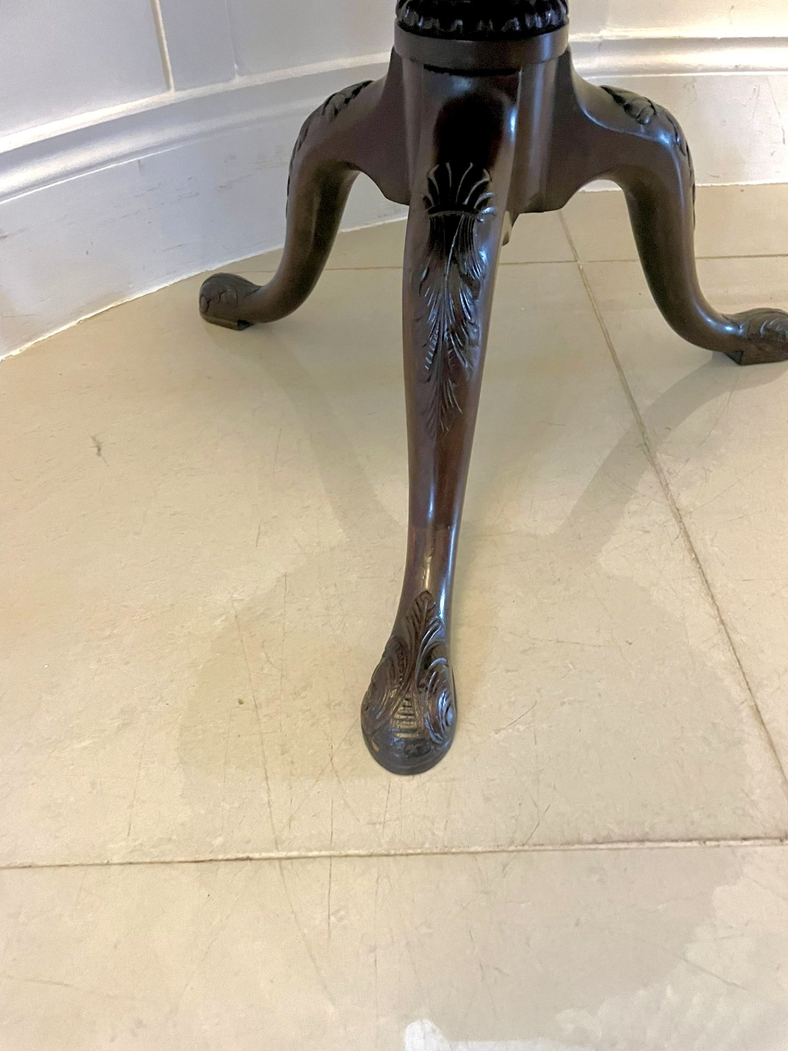 Antique George III quality mahogany coffee table having a wonderful quality mahogany shaped top with a moulded edge supported by a carved mahogany pedestal column standing on three carved mahogany shaped cabriole legs with pad feet