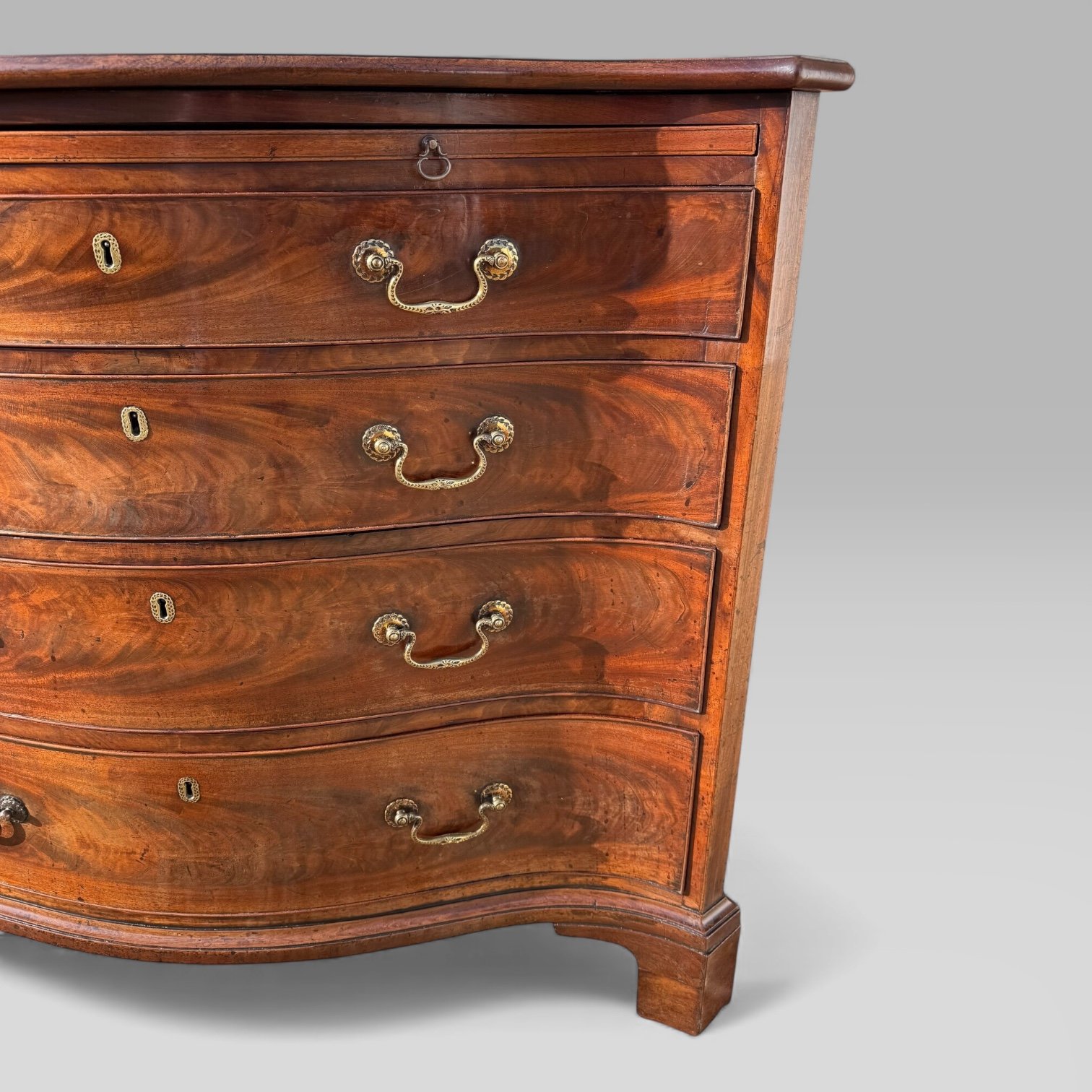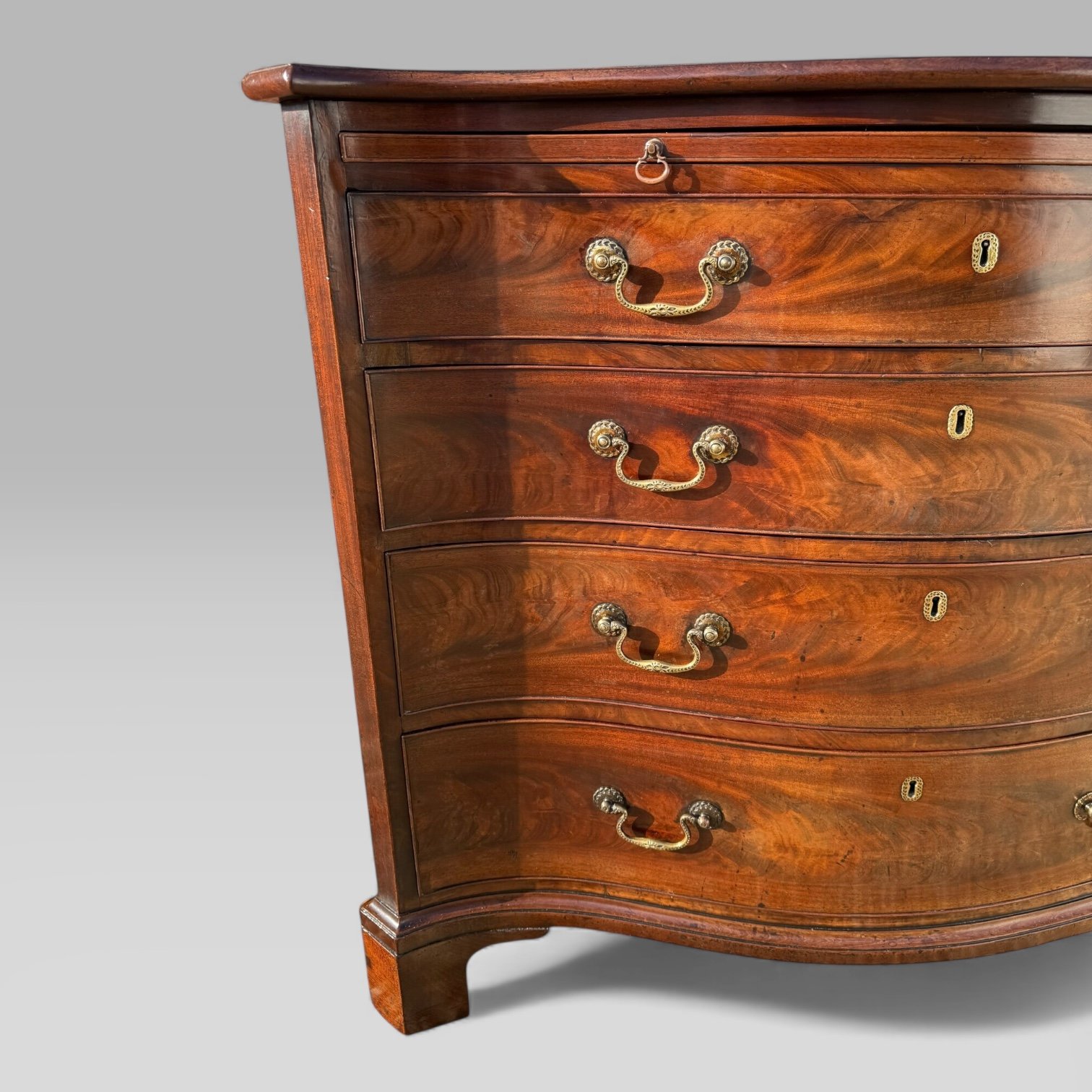 Antique Georgian 1760 Mahogany Serpentine Chest Of Drawers with Brushing Slide