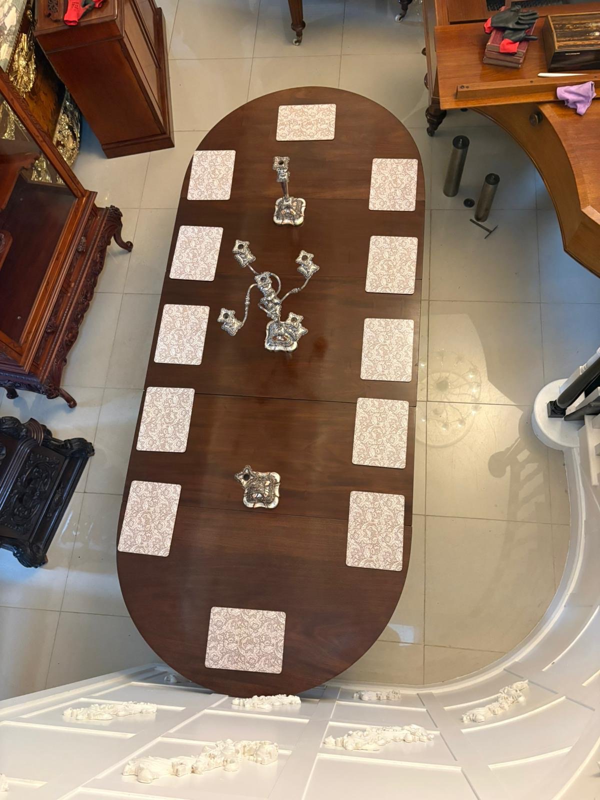 Triple pillar tables such as this were designed for large formal dining rooms allowing hosts to accommodate significant gatherings while maintaining a refined appearance. Today they remain one of the most practical and sought after dining table forms.