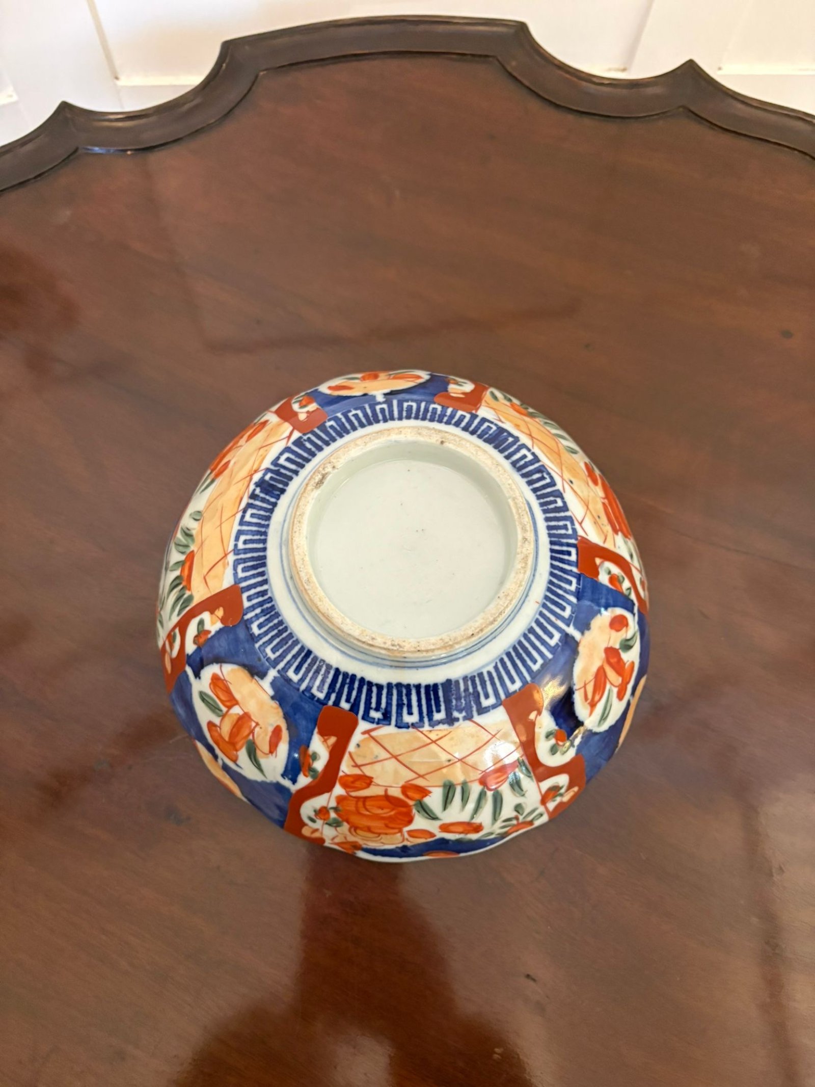 The reverse is simply finished, and the piece displays the characteristic spontaneity and charm associated with Meiji-period Imari wares. Decorative yet practical in scale, it works well as a centrepiece, serving bowl, or display item.
