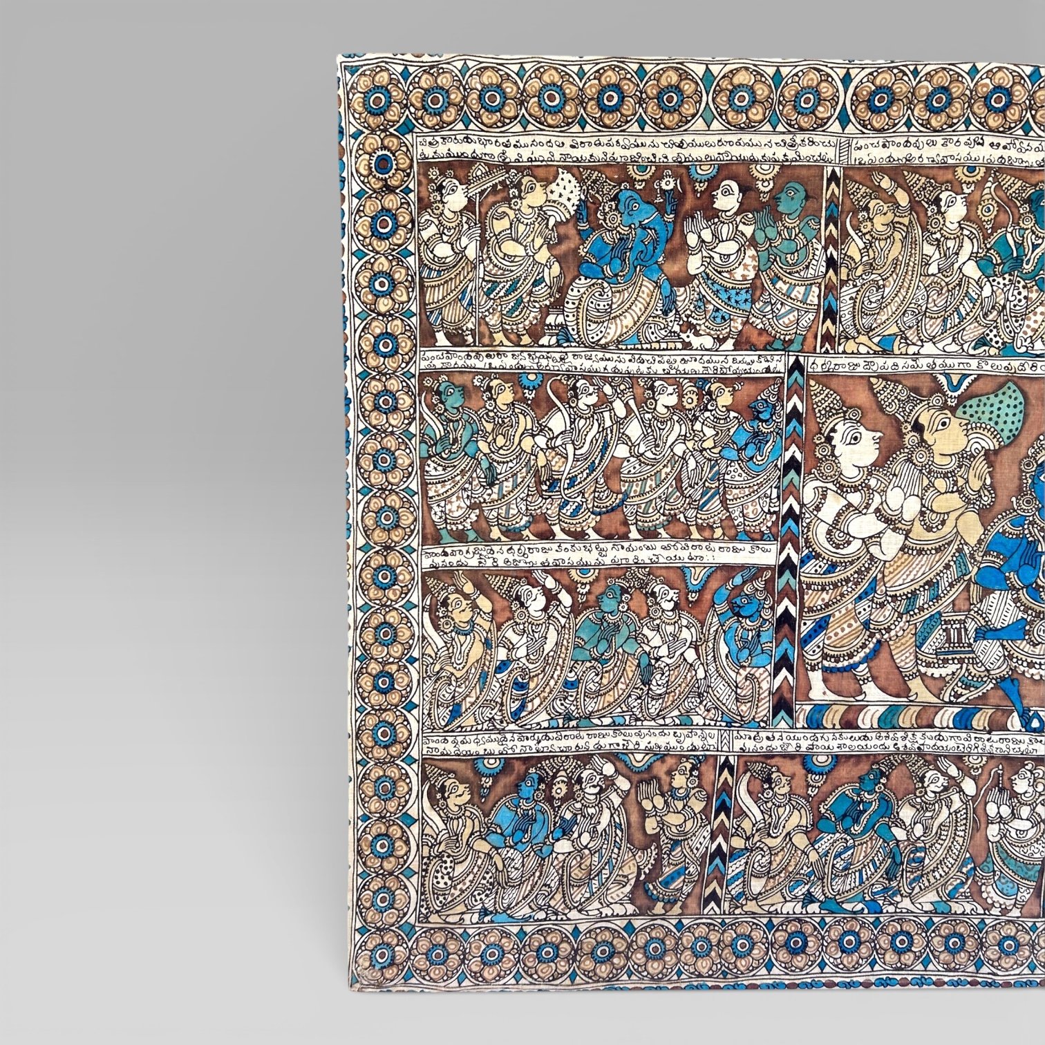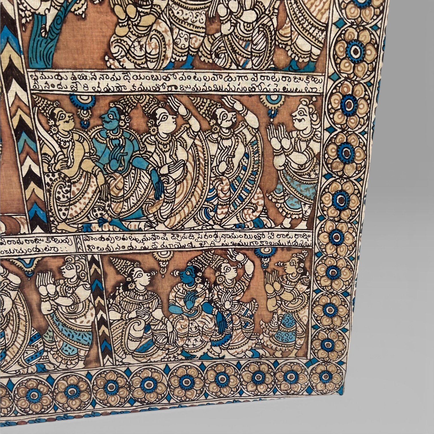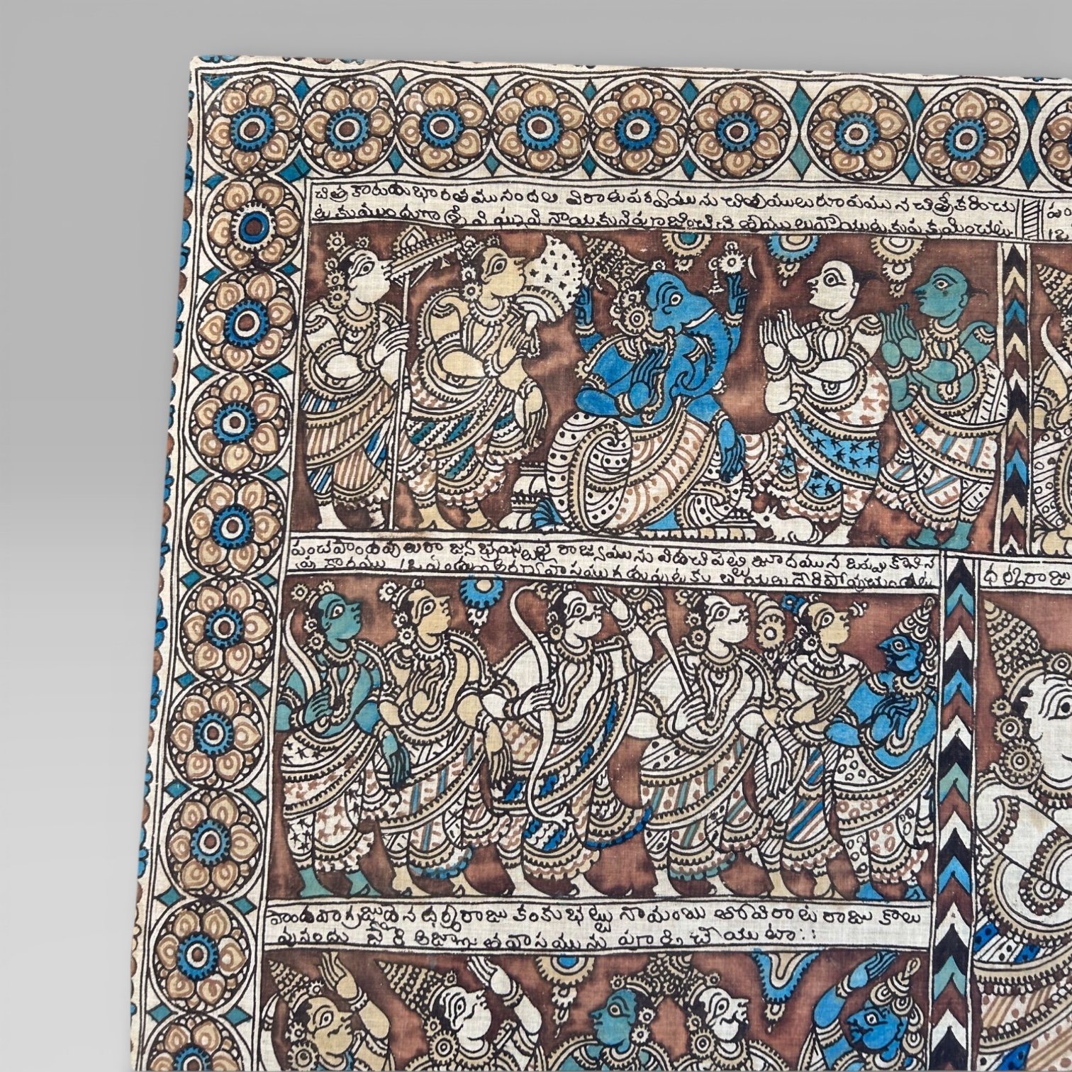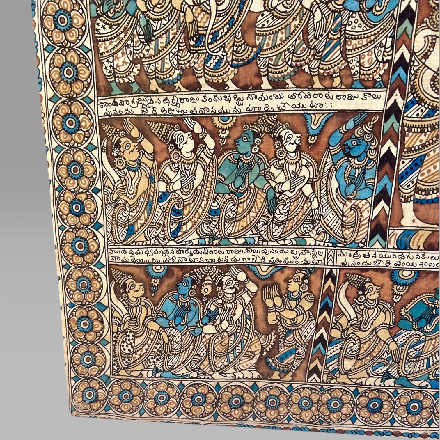 Antique Large Indian Kalamkari Temple Painting Hindu Story Textile Wall Art (2)