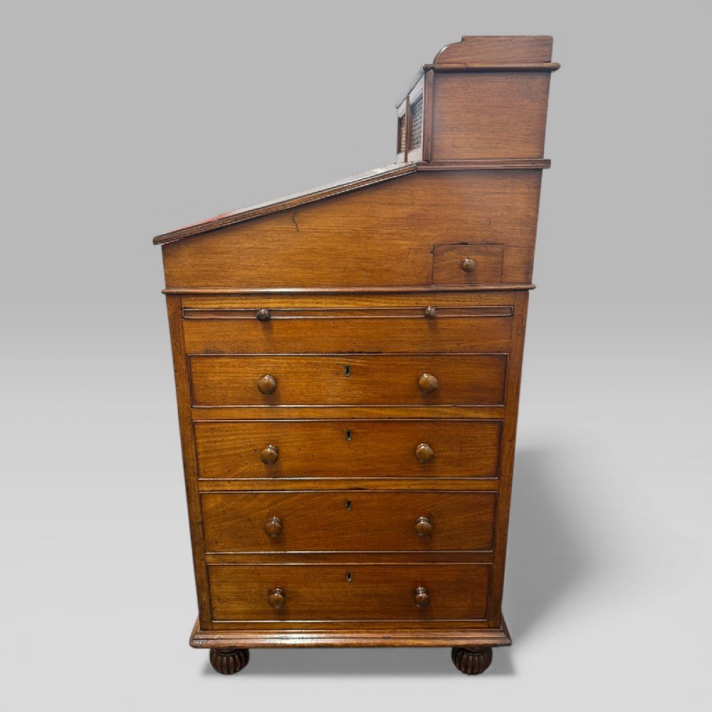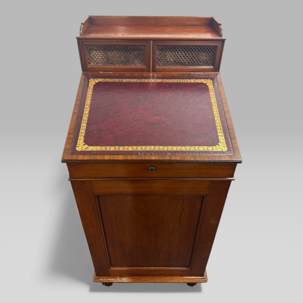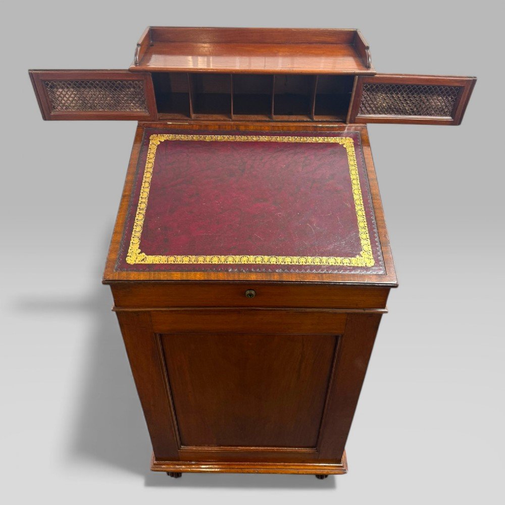Gillows of Lancaster was one of Britain’s most important cabinetmaking firms, active from the mid-18th century and especially renowned during the Georgian and Regency periods. The firm is credited with creating the original Davenport desk, which was designed in the early 19th century for Captain Davenport, an officer who required a compact, practical writing desk suitable for limited space.