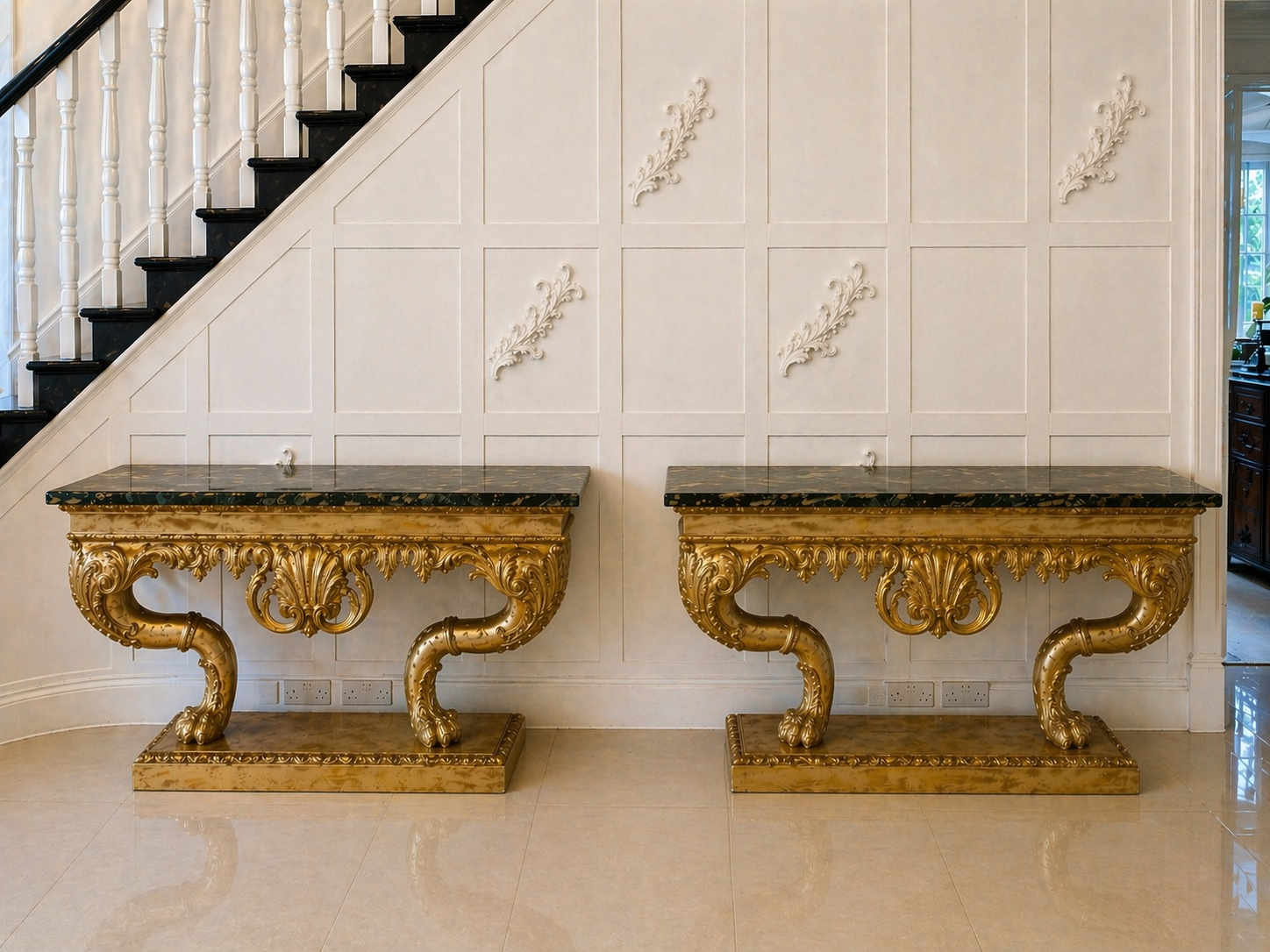 The scale of these consoles sets them apart. They were designed not as everyday furniture but as statement pieces for grand interiors, traditionally placed against a wall beneath mirrors in entrance halls, salons or reception rooms. Their purpose was to display fine objects such as candelabra, sculpture or porcelain while creating symmetry and impact within a space.