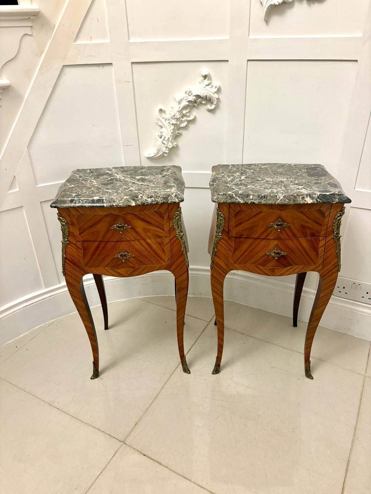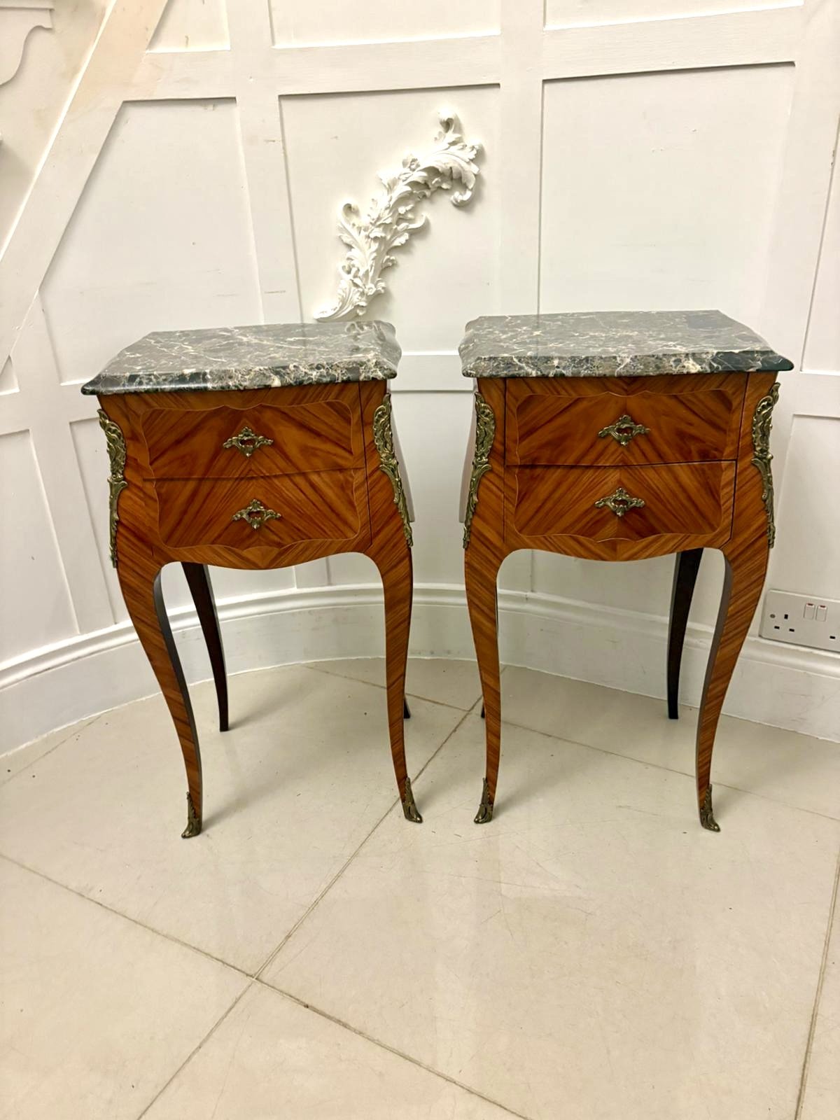 Antique Pair of Quality French Louis XV Style Marble-Top Bedside Cabinets