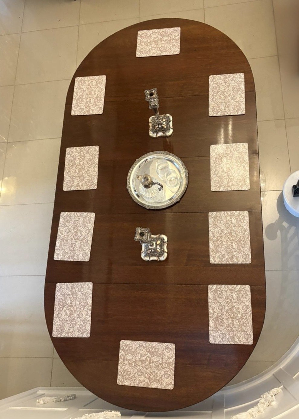 The carving to the legs is confident and crisp, giving the table strong visual presence while retaining elegant proportions. This form is both decorative and highly practical, making it an ideal centrepiece for a large dining room or formal entertaining space.