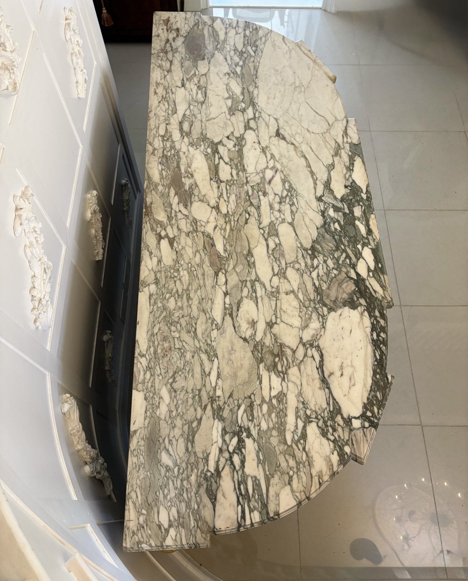 Height 97.5 x Width 212 x Depth 81.5 cm (38.38 x 83.46 x 32.09 in); marble cut slightly larger