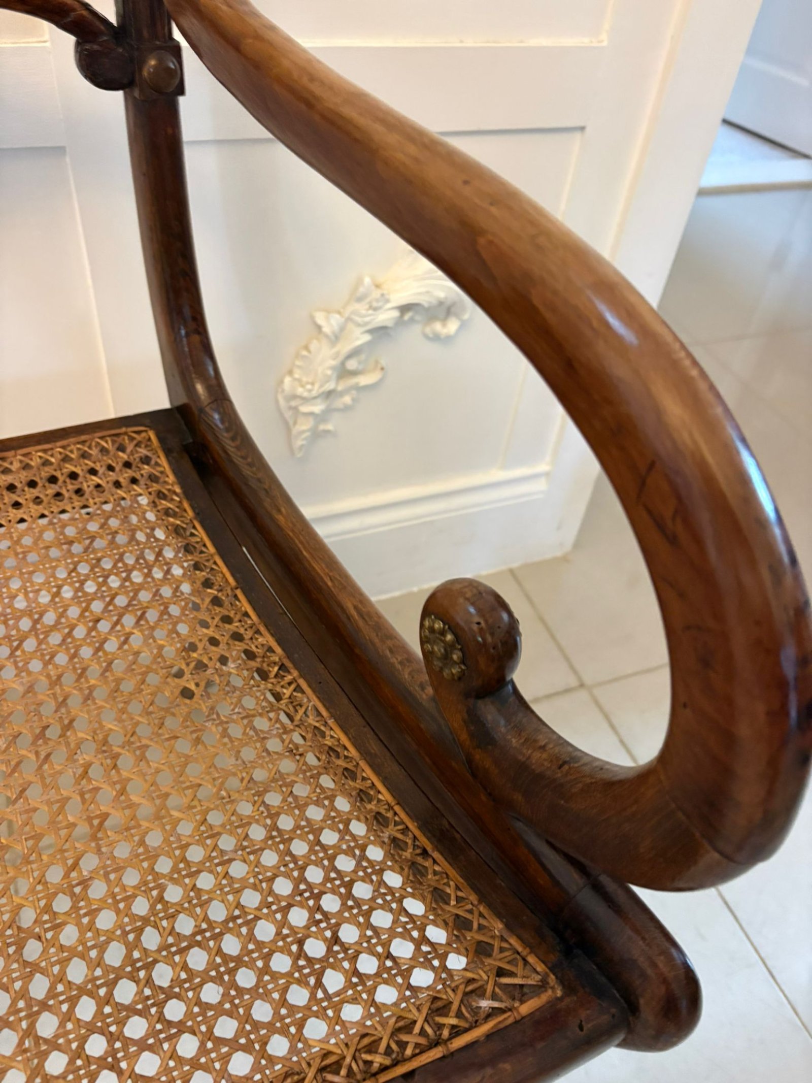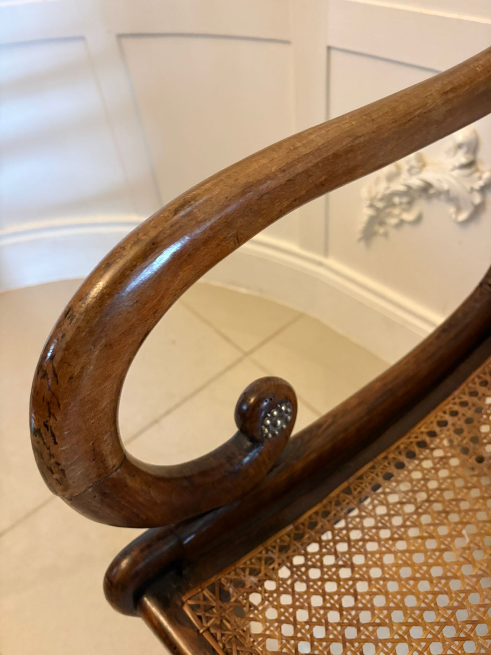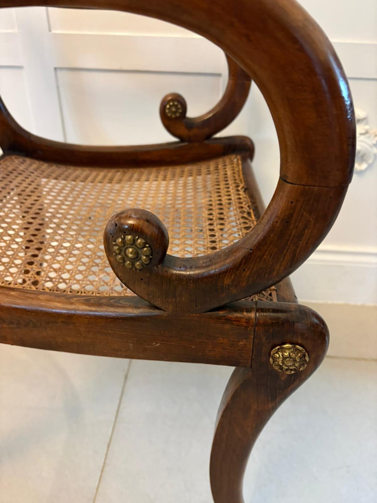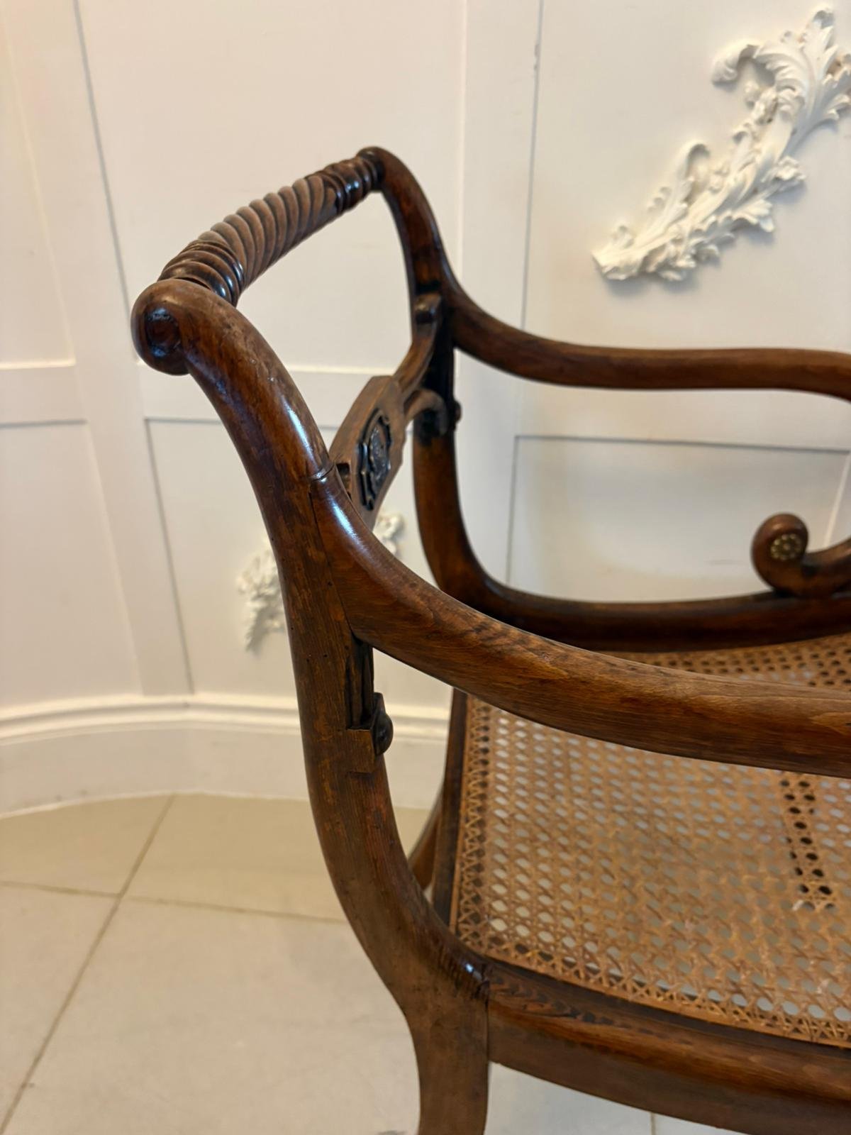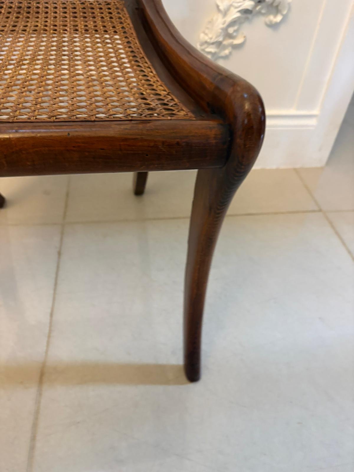 Cane seats were particularly popular during the Regency period as they were lighter than upholstered seating and provided a cooler, practical surface for dining rooms and morning rooms. The cane panels remain strong and supportive.