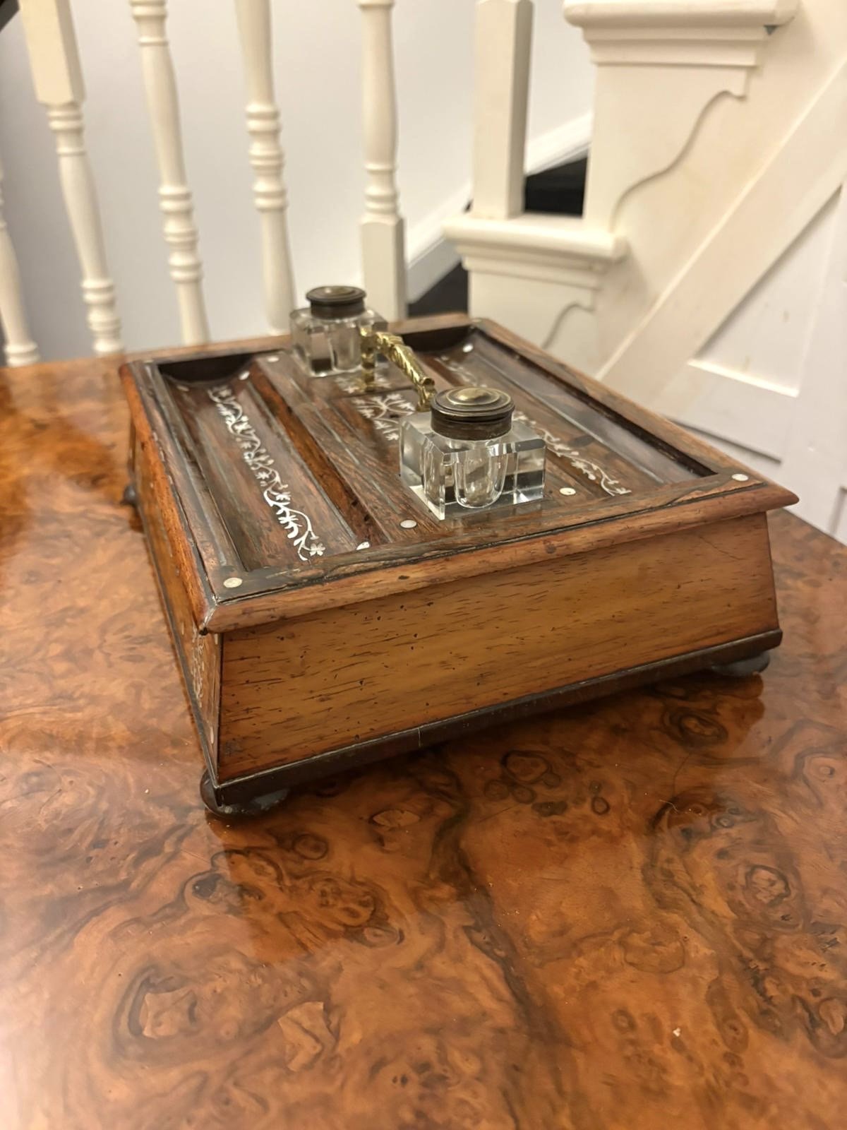 Antique Regency Rosewood Inlaid Writing Desk Set with Inkwells