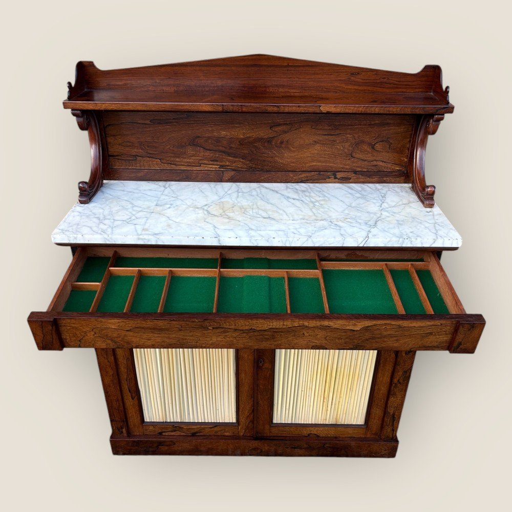 Antique Regency Rosewood Marble Top Chiffonier With Two Door Storage Cupboard