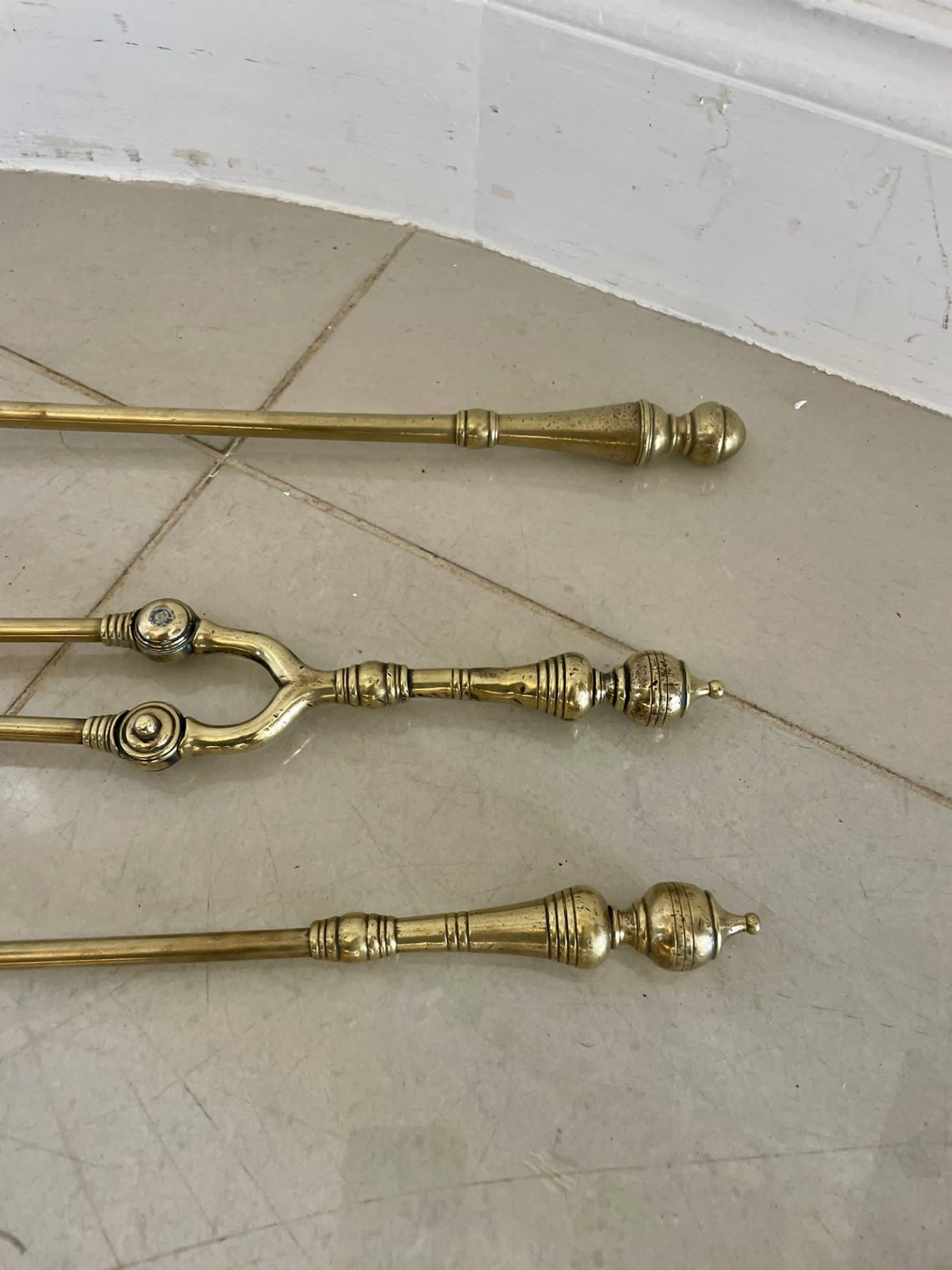 Antique Set of Three Victorian Quality Brass Fire Irons
