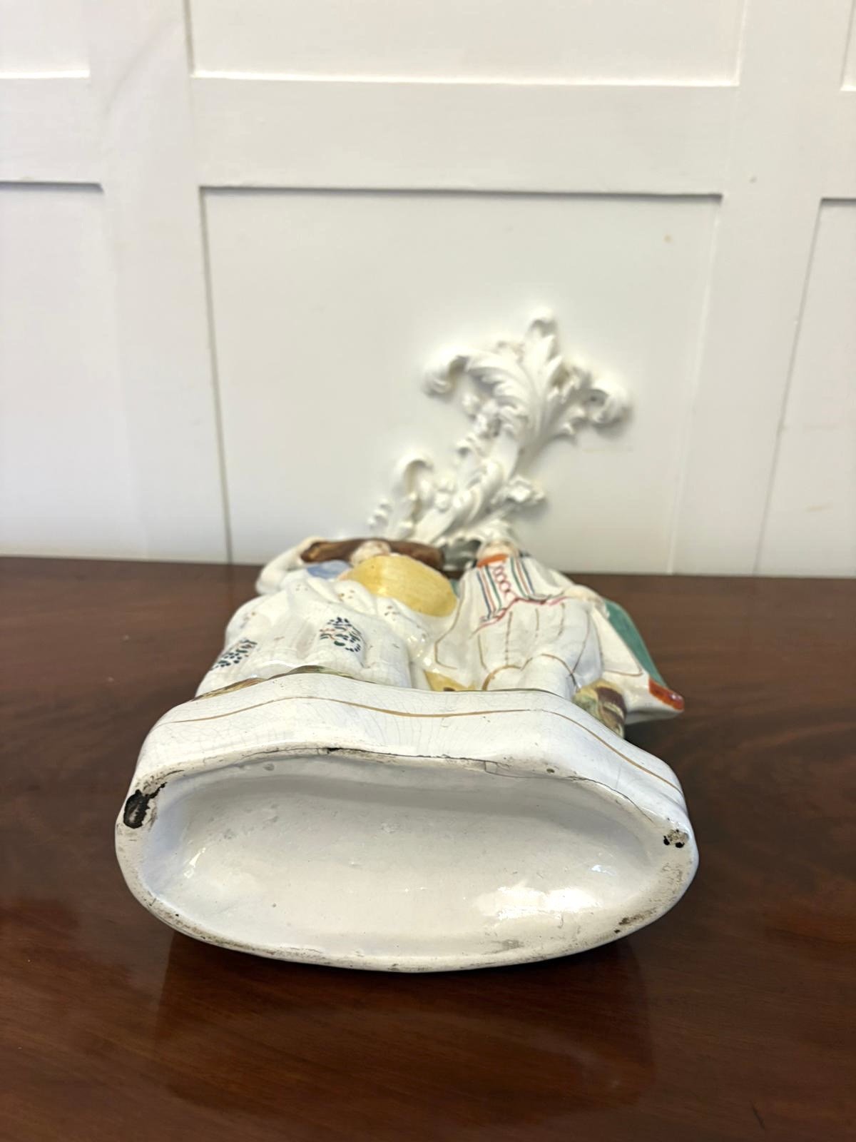 This piece captures the romanticised rural life so popular in Victorian England reflecting the sentimental taste of the period. The glaze displays a fine network of age-related crazing typical of authentic 19th-century Staffordshire pottery.