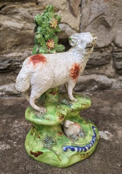 Antique Staffordshire Pottery - Walton - Pearlware Sheep & Lamb Figure