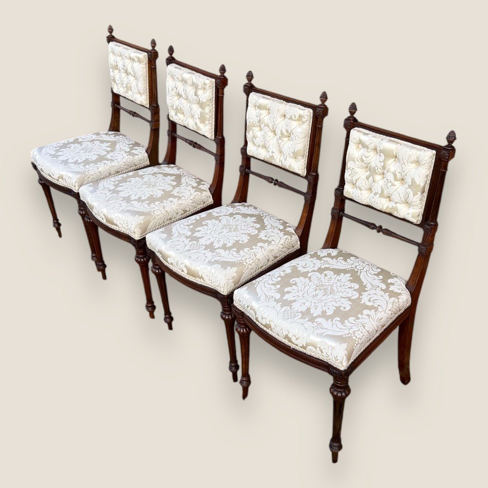 Antique Victorian Carved Mahogany 4 White Dining Chairs Turner & Son Liverpool