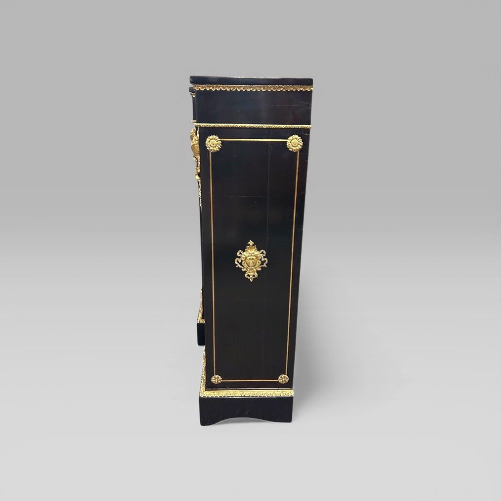 Antique Victorian Ebonised & Brass Inlaid Boulle Breakfront Credenza Sideboard
