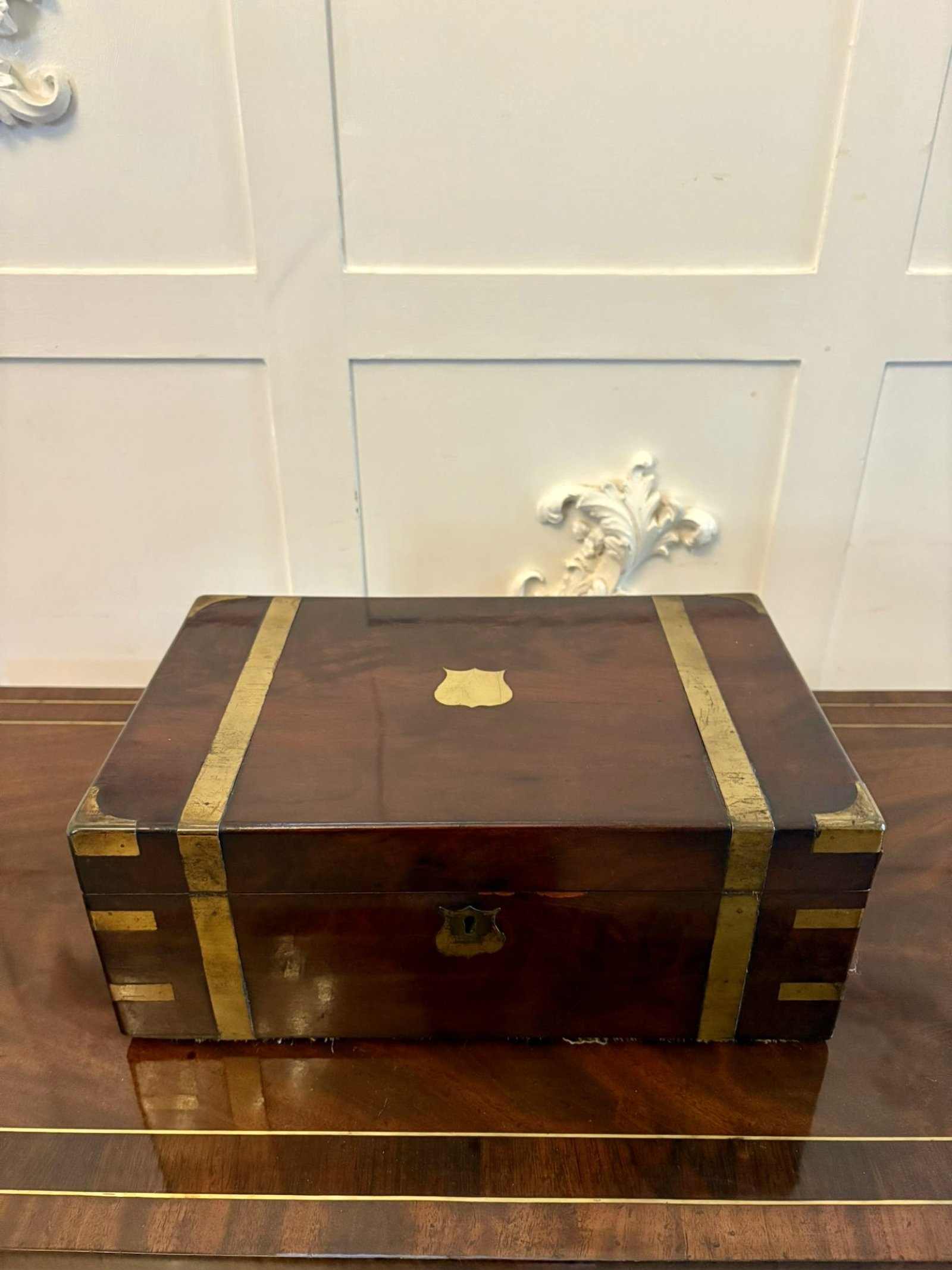 Antique Victorian Mahogany Brass Bound Writing Box